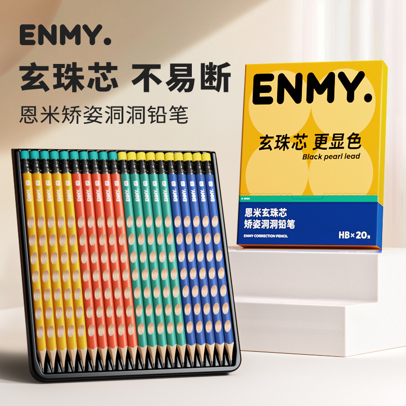 恩米ENMY玄珠芯矯正姿洞鉛筆20本箱入り学生木棒鉛筆が切れにくい子供鉛筆