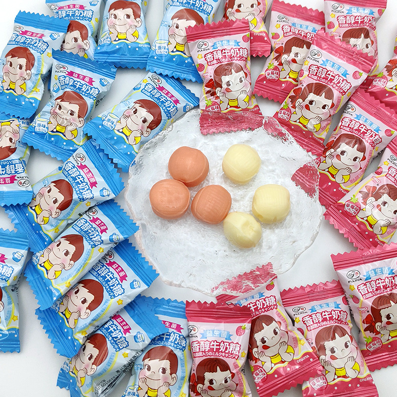 不二家益生菌香アルコールミルク砂糖いちご味硬糖喜糖果レジャー間食満1歳お土産ばら売り