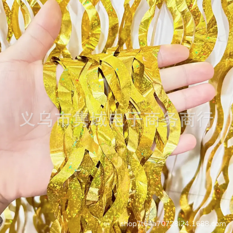 国境を越えた新しいレーザー三日月レインシルクカーテン波レインシルクカーテン背景装飾誕生日パーティー写真シーンレイアウト