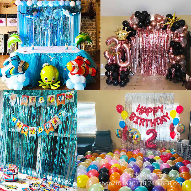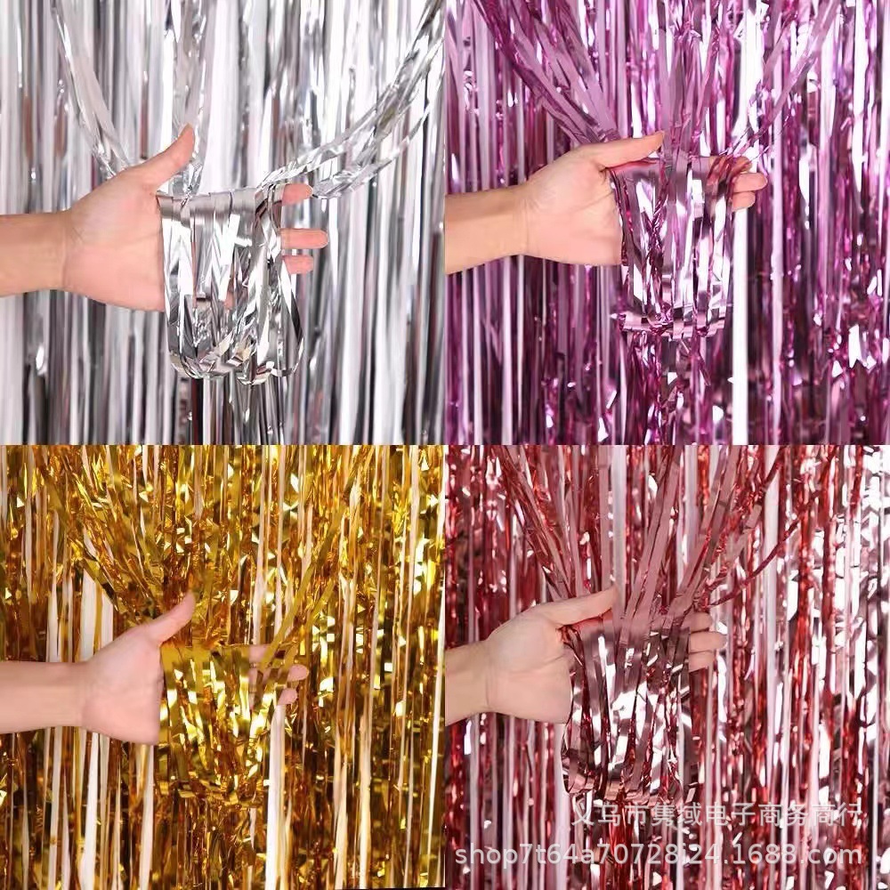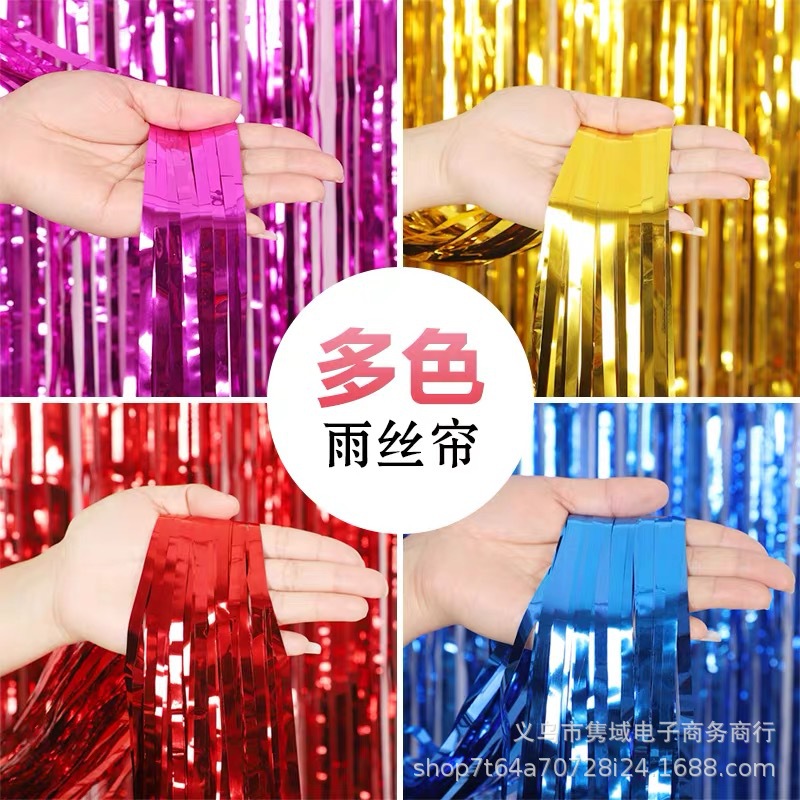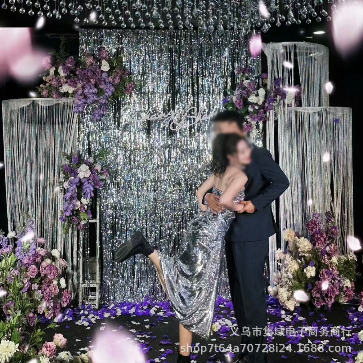 派对装饰雨丝帘生日布置婚礼背景墙装饰亮光雨丝帘流苏气球装饰帘