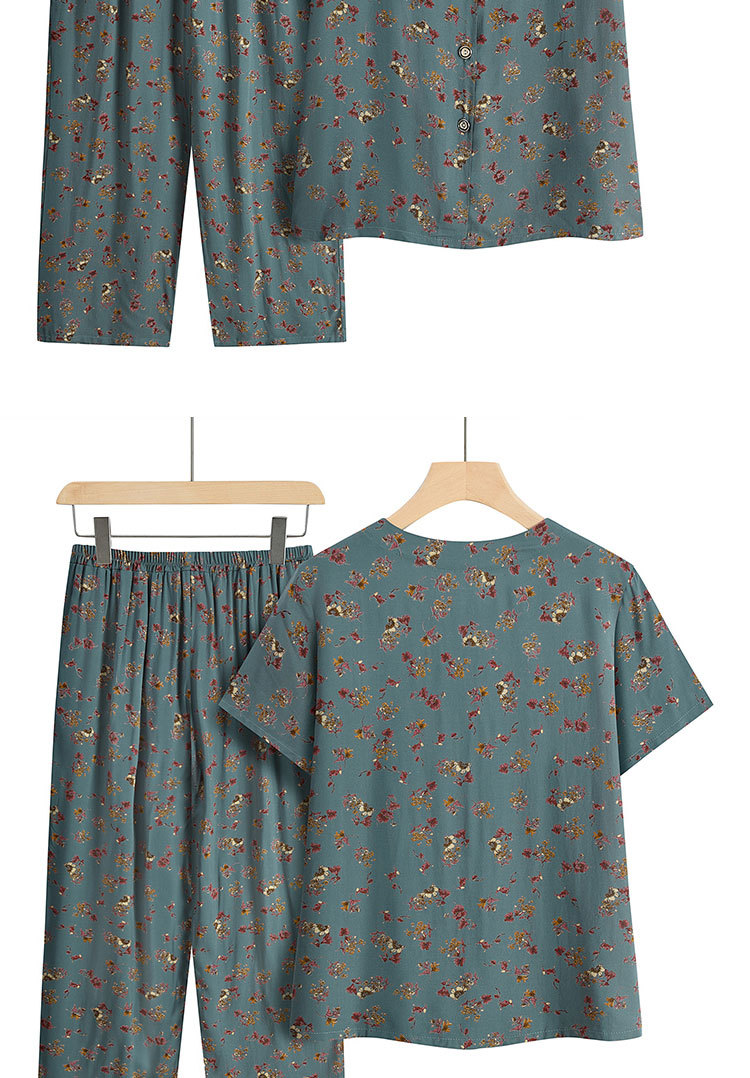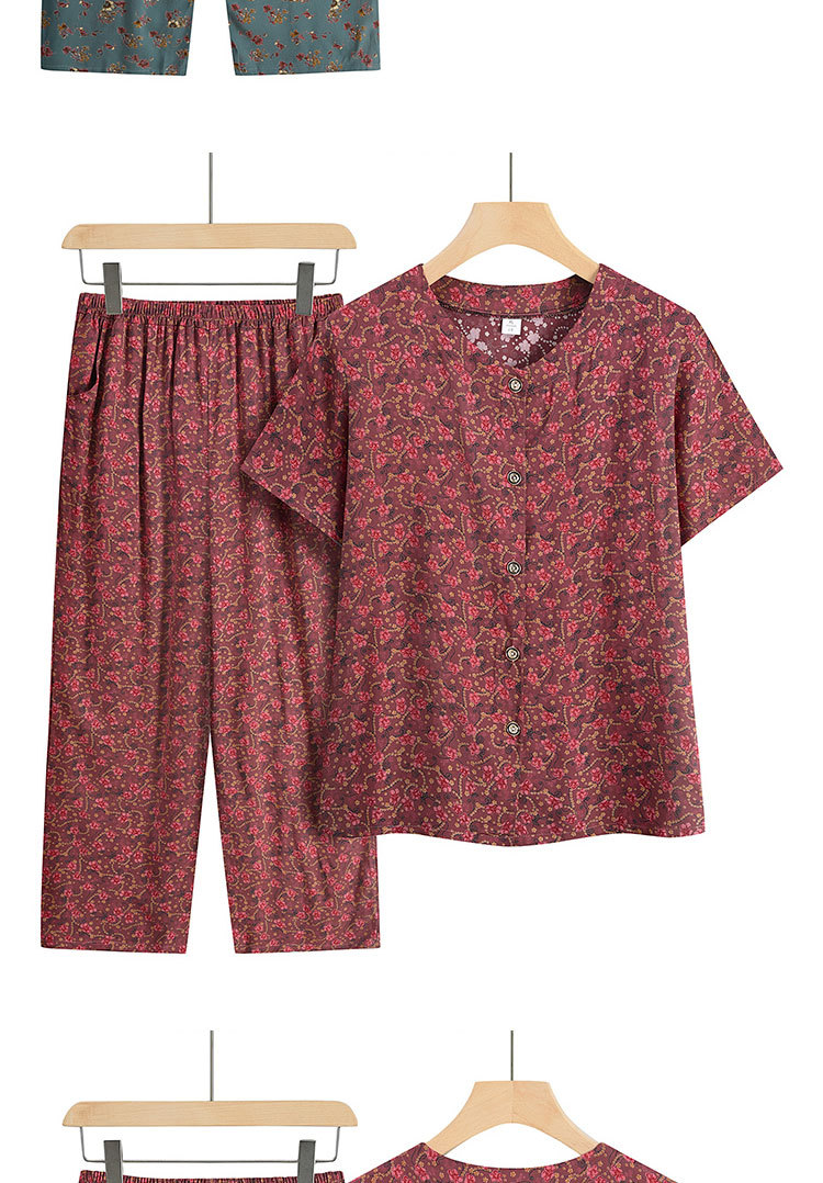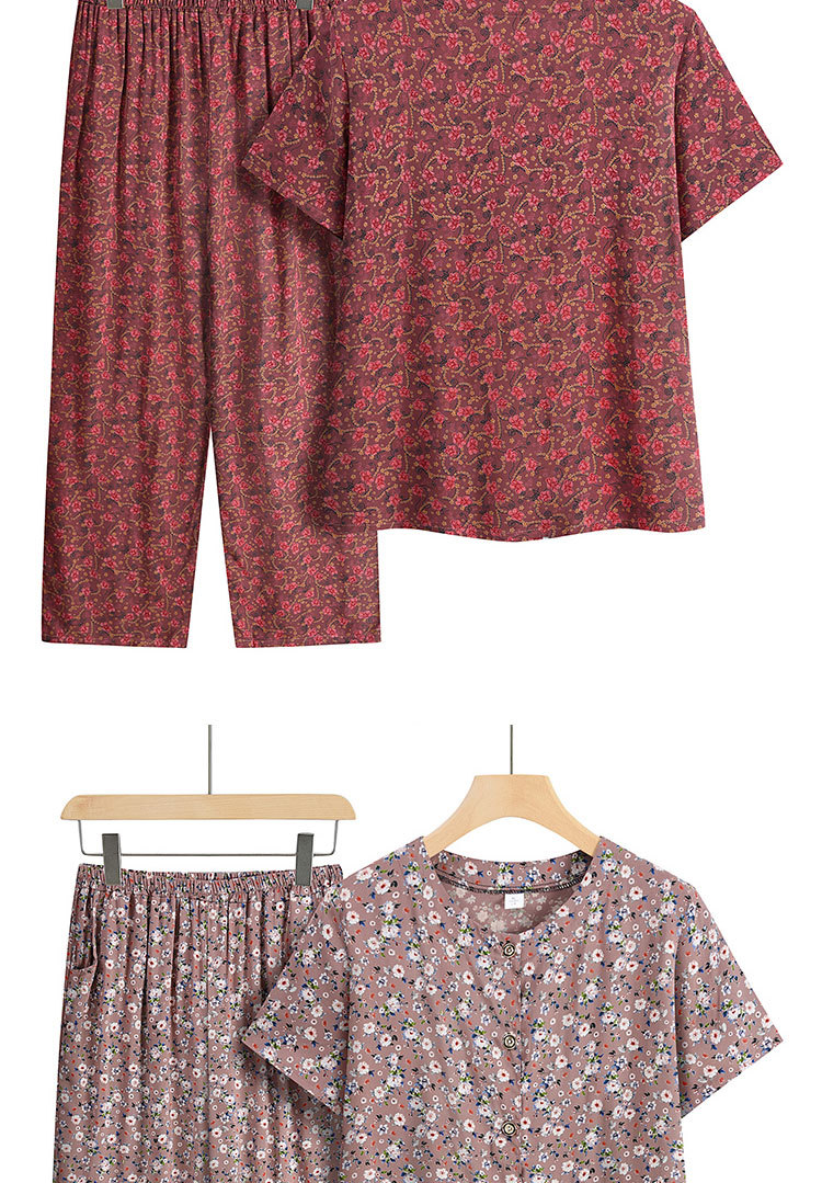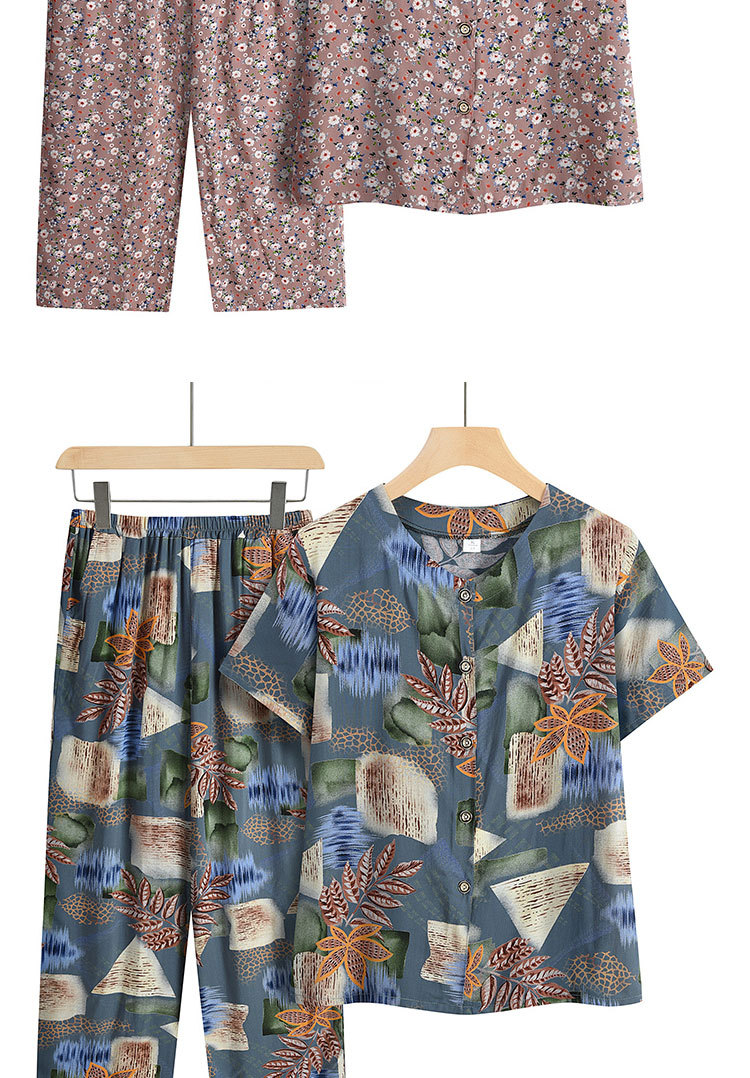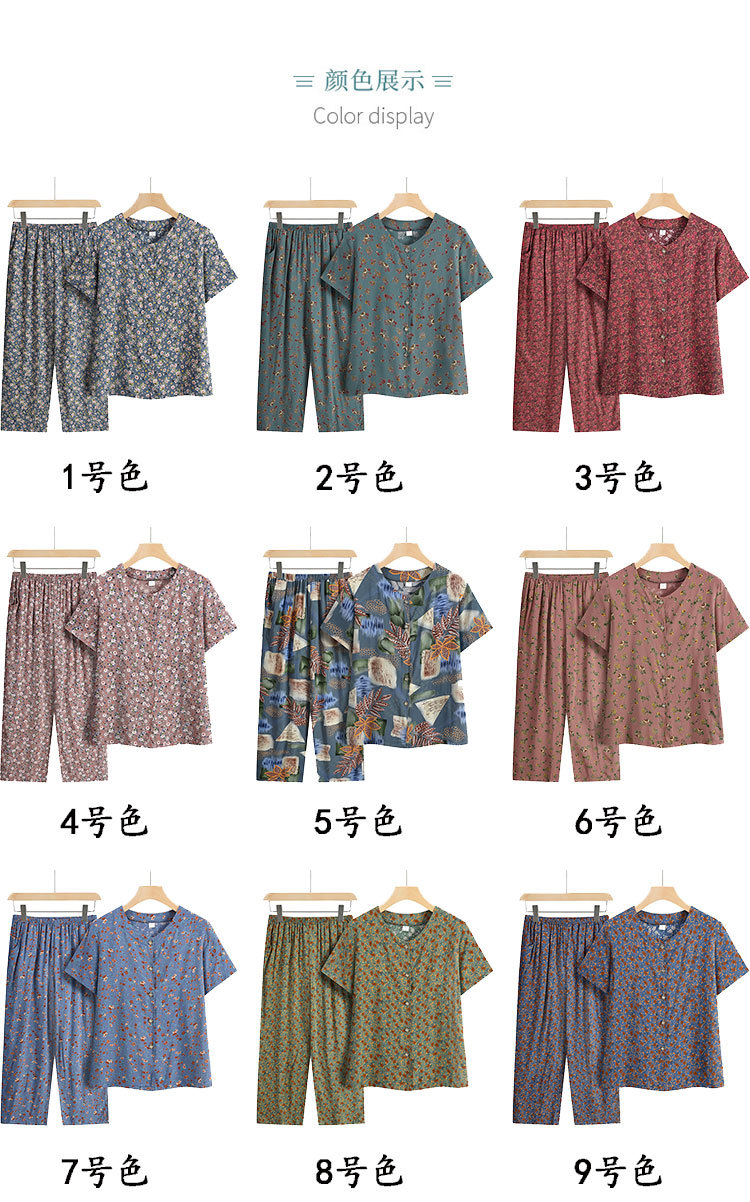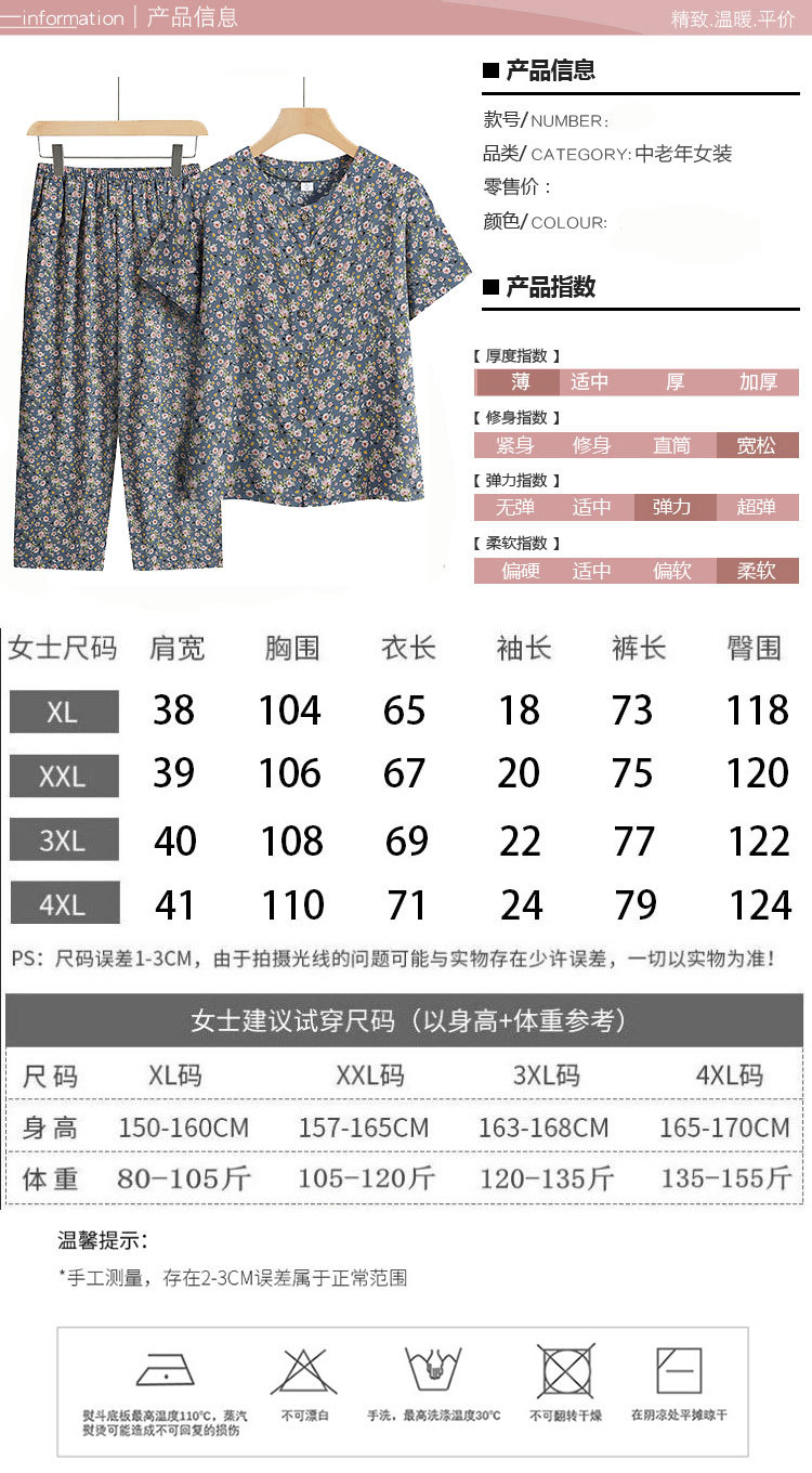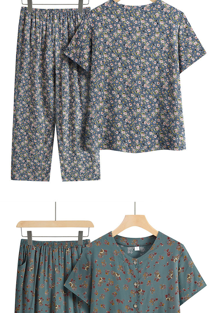 中高年夏のカジュアルスーツのお母さんは半袖の女性の60歳のおばあさんは綿の服のおばあさんの2つのセットを詰めます。