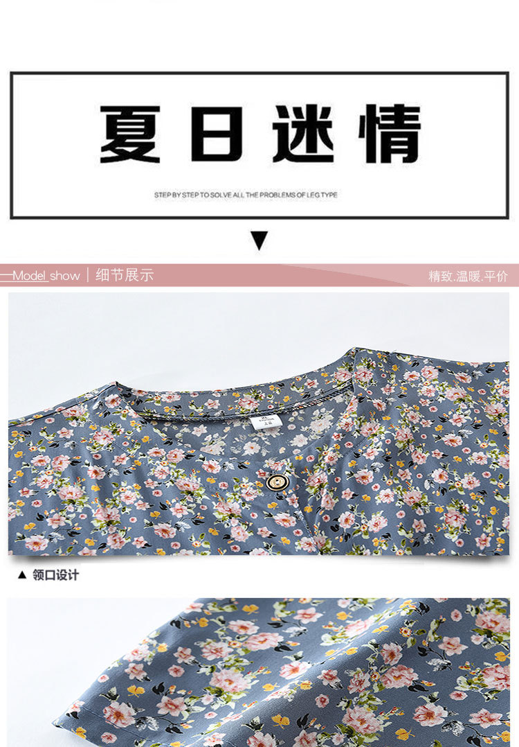 おばあさんの夏の半袖のスーツの中で老年の婦人服の薄いタイプのお母さんはカジュアルでゆったりしている2セットのおばあさんの服を詰めます。