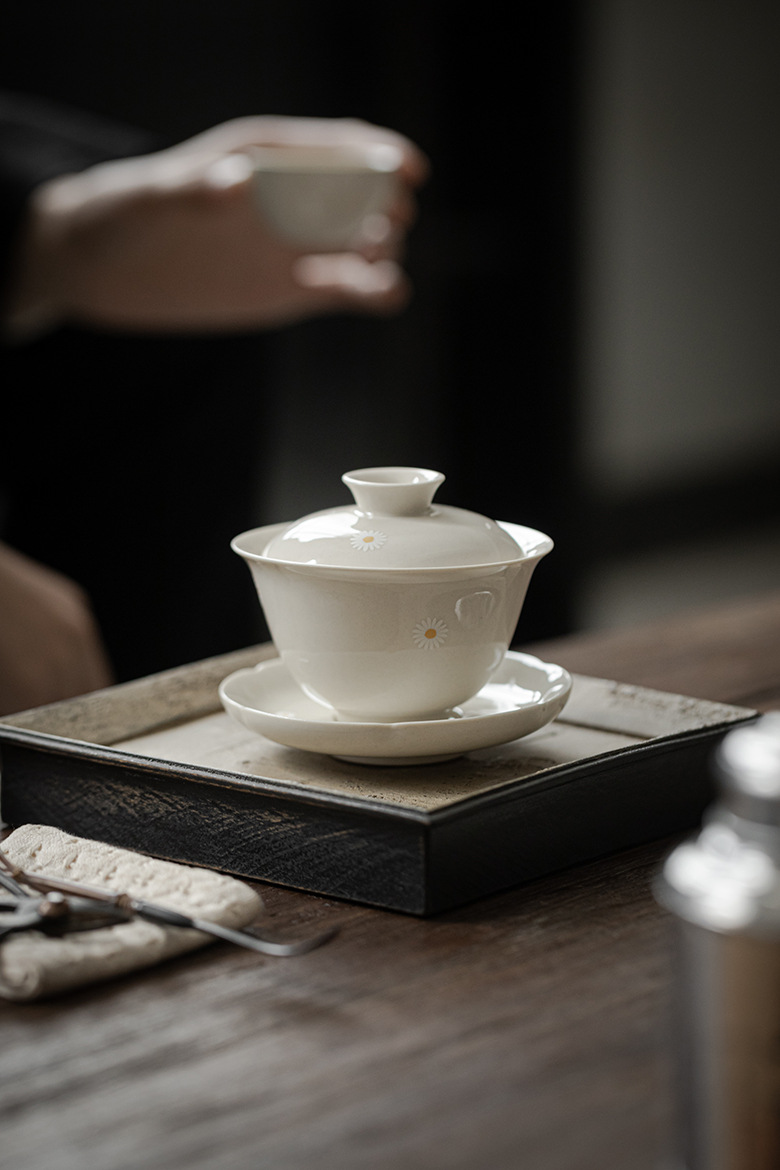 弥言純手作り薄手陶磁器蓋碗日本式家庭用茶碗カップ工夫茶器セット