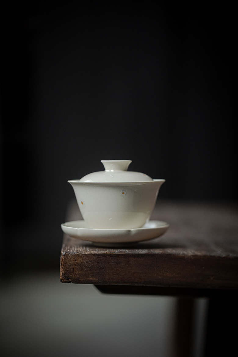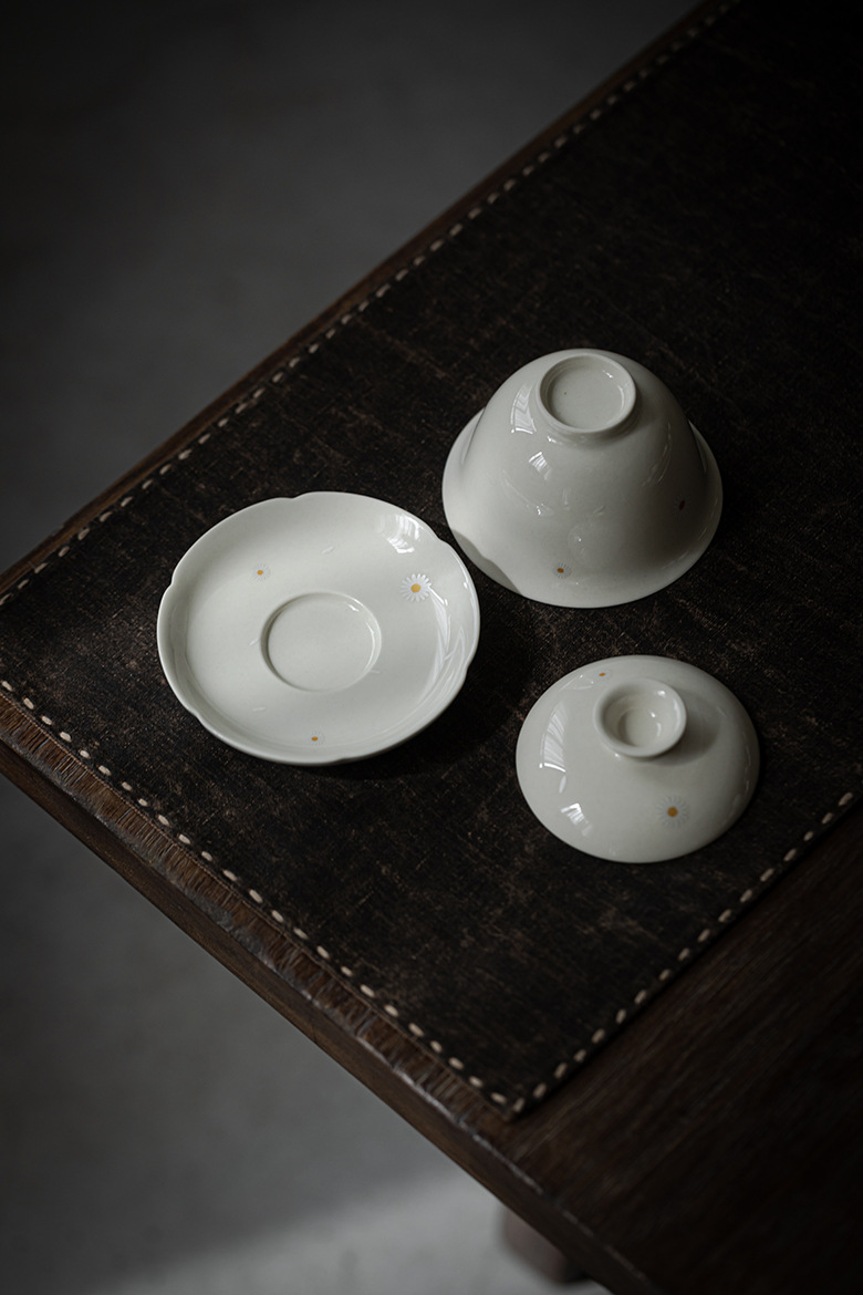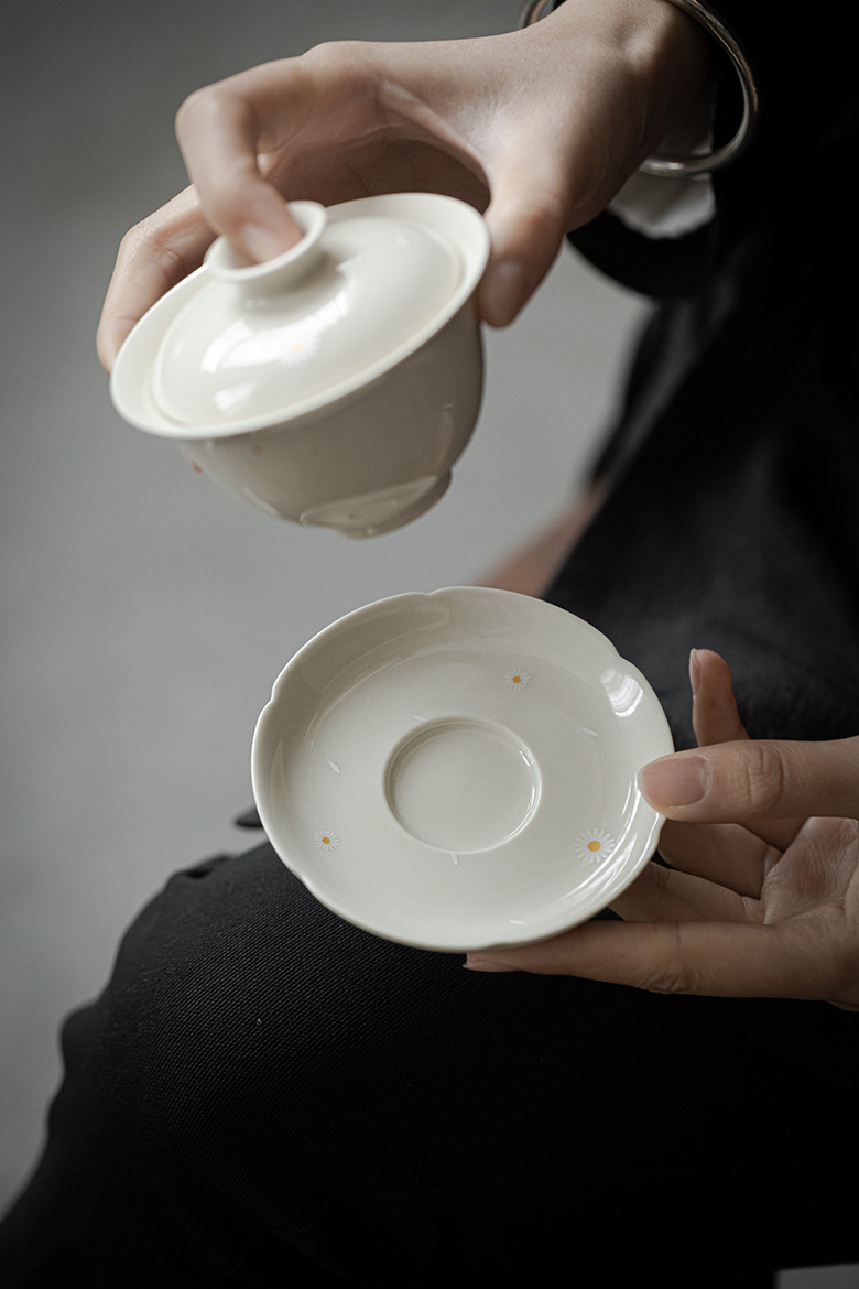 弥言草木灰蓋碗純手つまみ花泡茶碗カップ薄胎金蓋碗家庭用アイロンなし茶碗