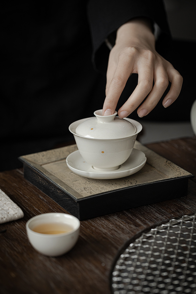 弥言草木灰釉薬下彩詩文蓋碗は古書書の二才をまねて碗をかぶせます。