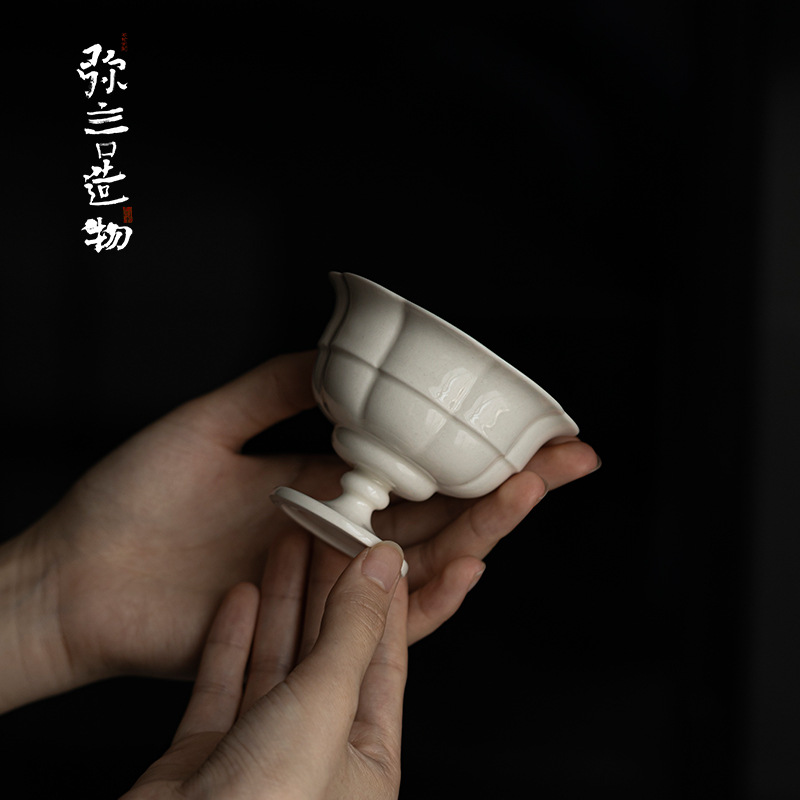 弥言純手描き高足花口主人杯純手作り陶磁器創意カップ家庭用品茗杯単杯工夫