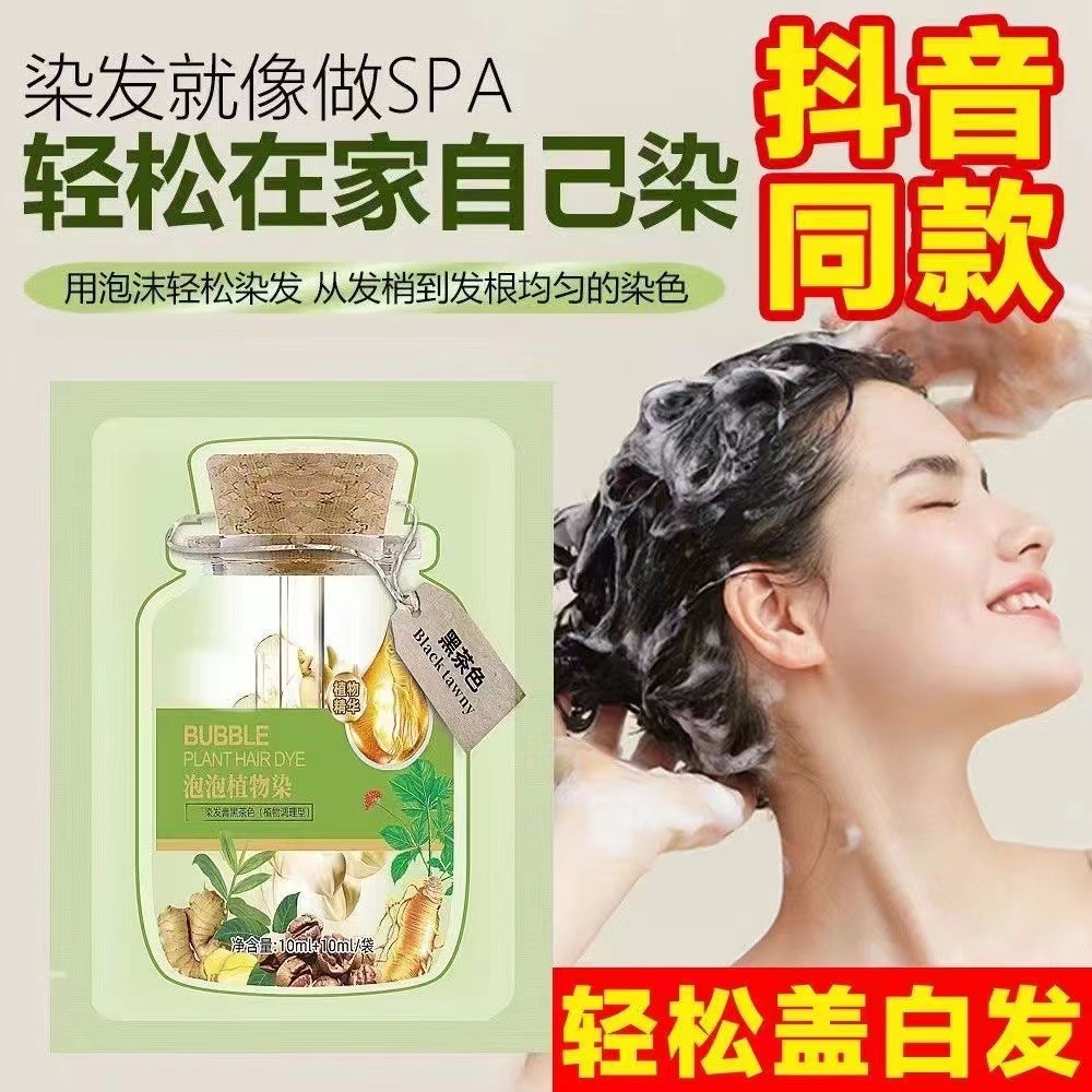 护染膏独立袋装泡泡染发剂孕妇自己在家染发膏盖白发护发植物萃取
