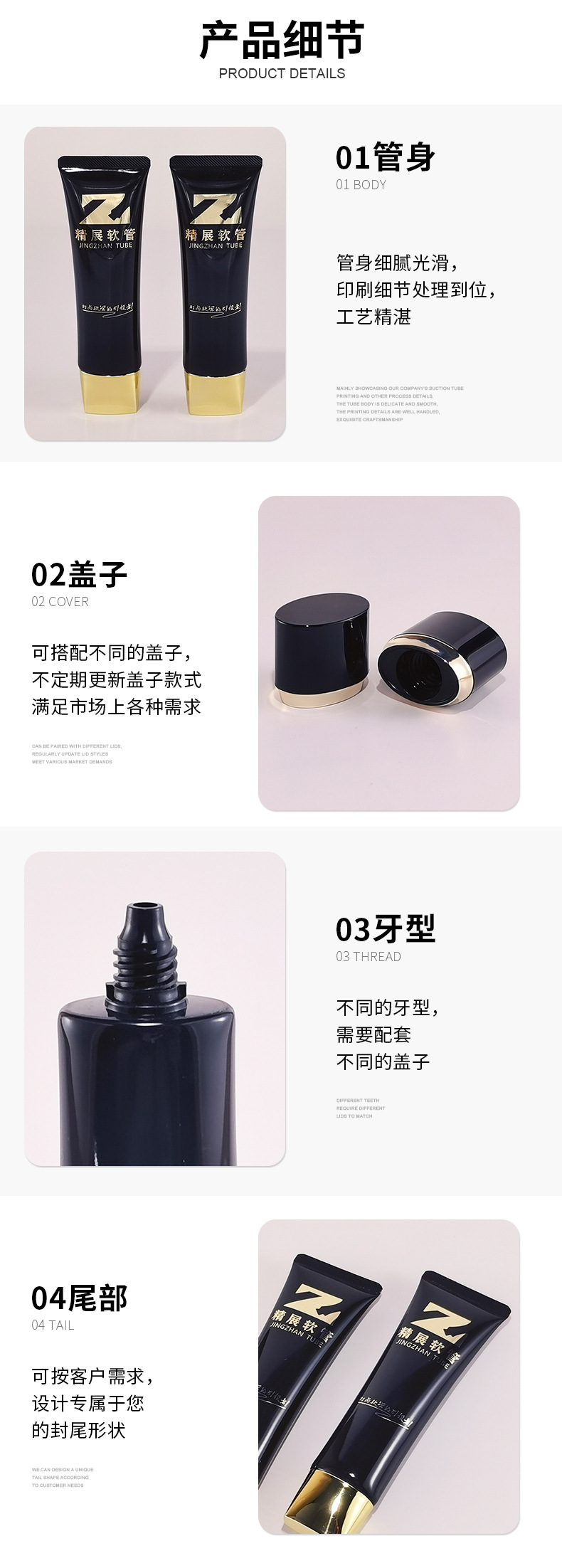化粧品プラスチックホースバッグ材アイクリーム精華乳素顔クリーム包装pe押出管アクリル修腰カバー