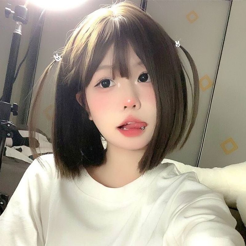 程銘かつらネット赤少羅自然lolitaかつら斉前髪双馬尾新短髪30cm