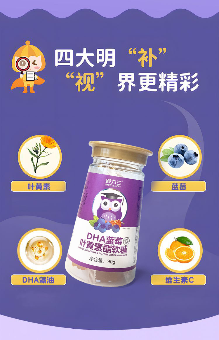 蓝莓叶黄素软糖山楂鸡内金软糖益生菌软糖 维生素c软糖