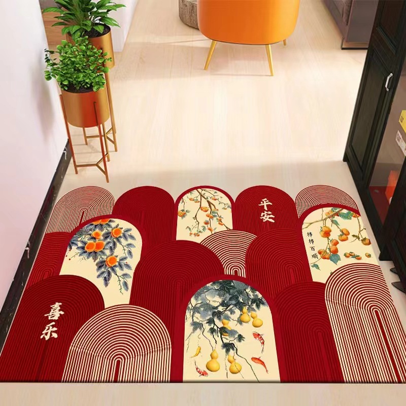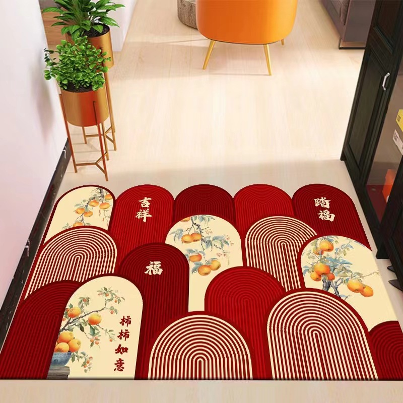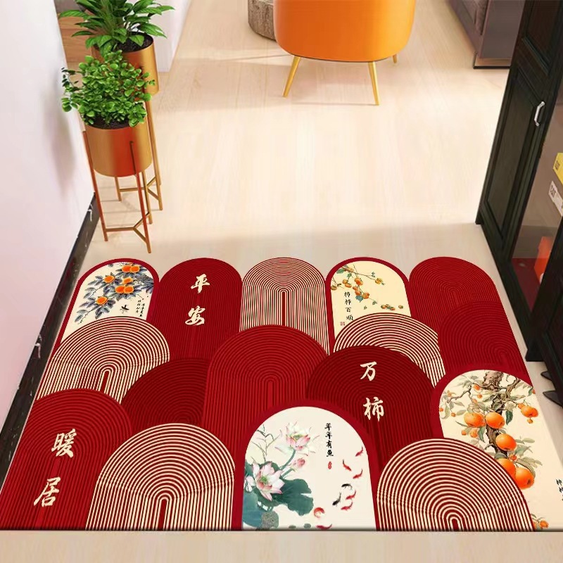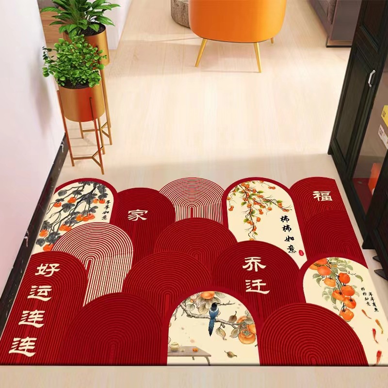 新しいお祝いの赤い糸の輪のマットの玄関のじゅうたんはドアのマットに入ります。