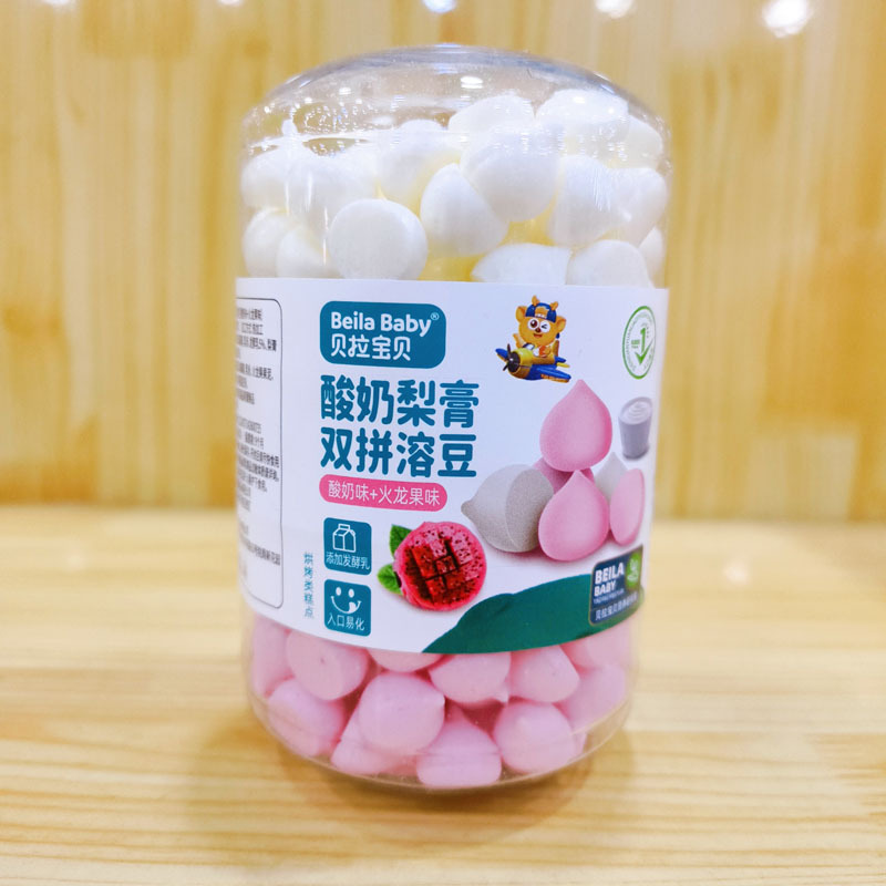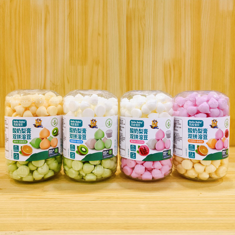 2025年9月 ベラベイビー ヨーグルト梨ペースト ダブルミックス ソリュブルビーンズ 20g 二層ソリュブルビーンズ スナック ツートンカラー ソリュブルビーンズ
