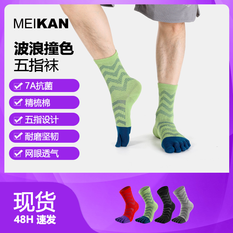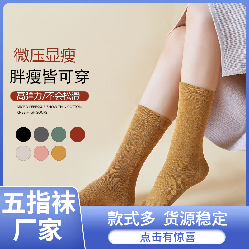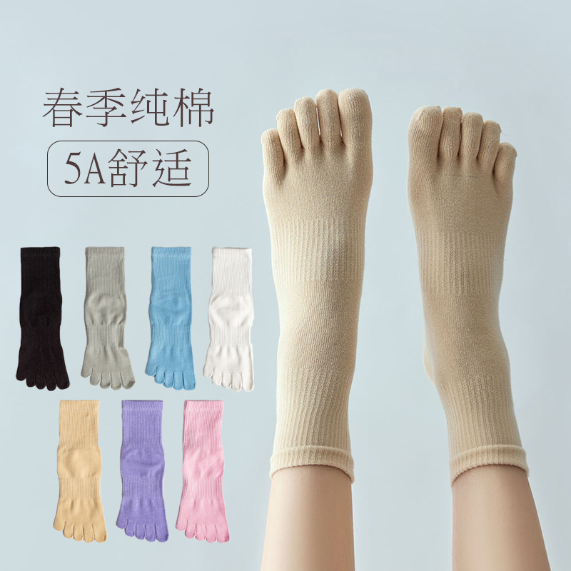 跨境新款中筒有后跟分趾袜女纯色吸汗透气脚趾袜ins潮运动五指袜