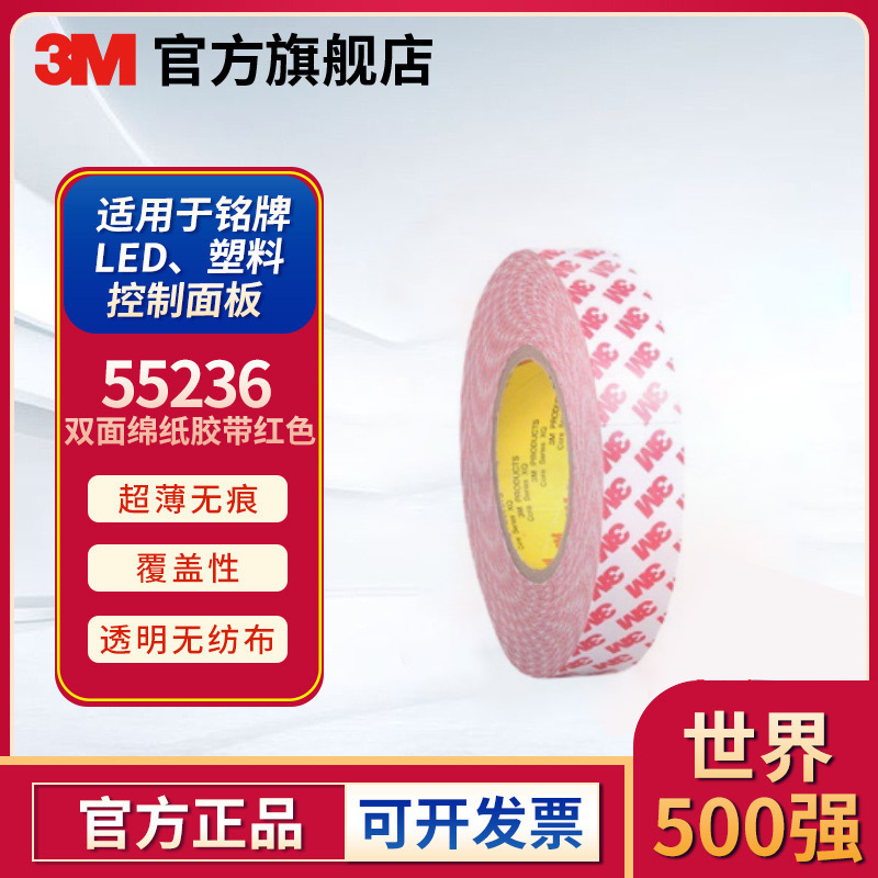 3m 55236強力両面綿テープレッド家電電子部品組立両面テープ