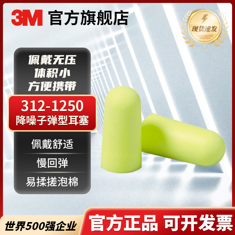 3m 312-1250騒音低減弾丸型防音耳栓pu泡綿仕事学習防音防止耳栓
