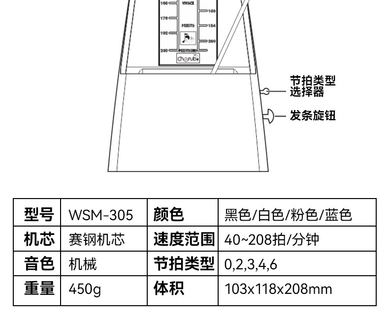 カラー WSM-305メトロノーム黒,WSM-305メトロノームホワイト,WSM-305機械メトロノームブルー,WSM-305メトロノームピンク