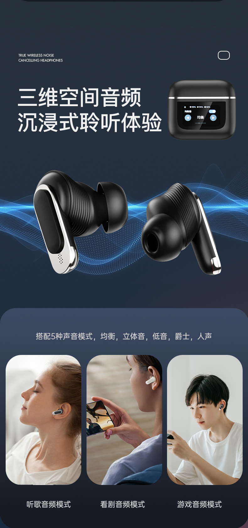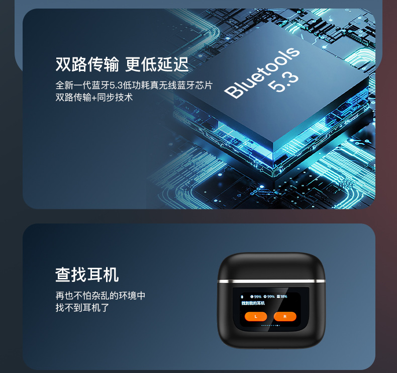 功能:低电量播报,环境音效切换,空间音效切换,充电仓寻找耳机,中英文语言切换,锁屏壁纸选择