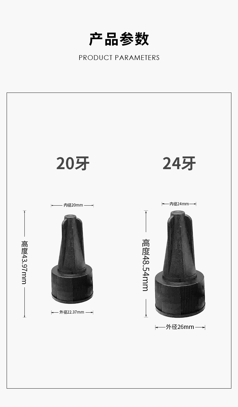 T18 20 24 28歯ジェル水蓋多規格尖口蓋組み合わせ蓋日用化粧品蓋ゴム蓋