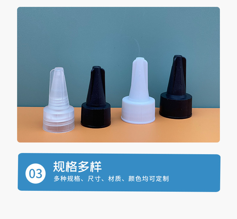 日本製尖った口キャップ、ねじ込み式キャップ、24歯口尖った口キャップ、流量制御が簡単、漏れ防止、回転式絞り出しプラスチック尖った口キャップ