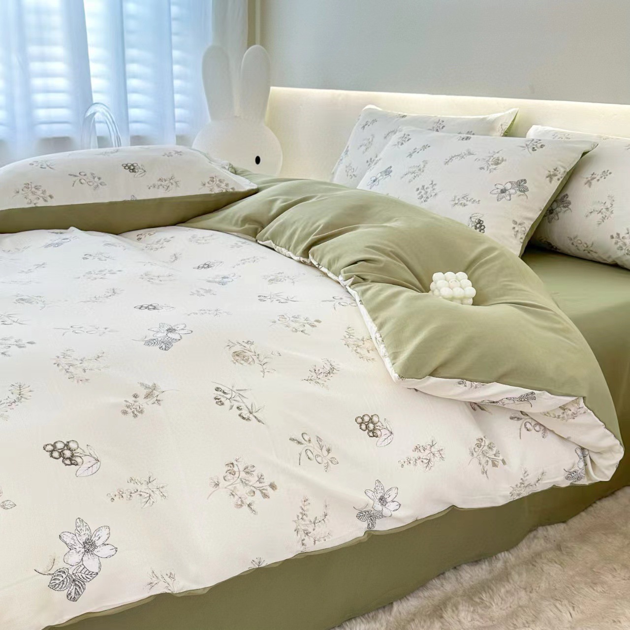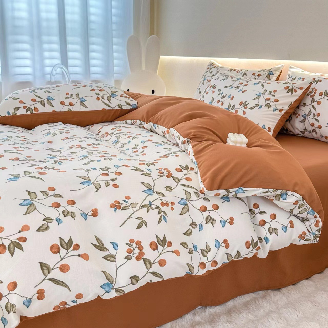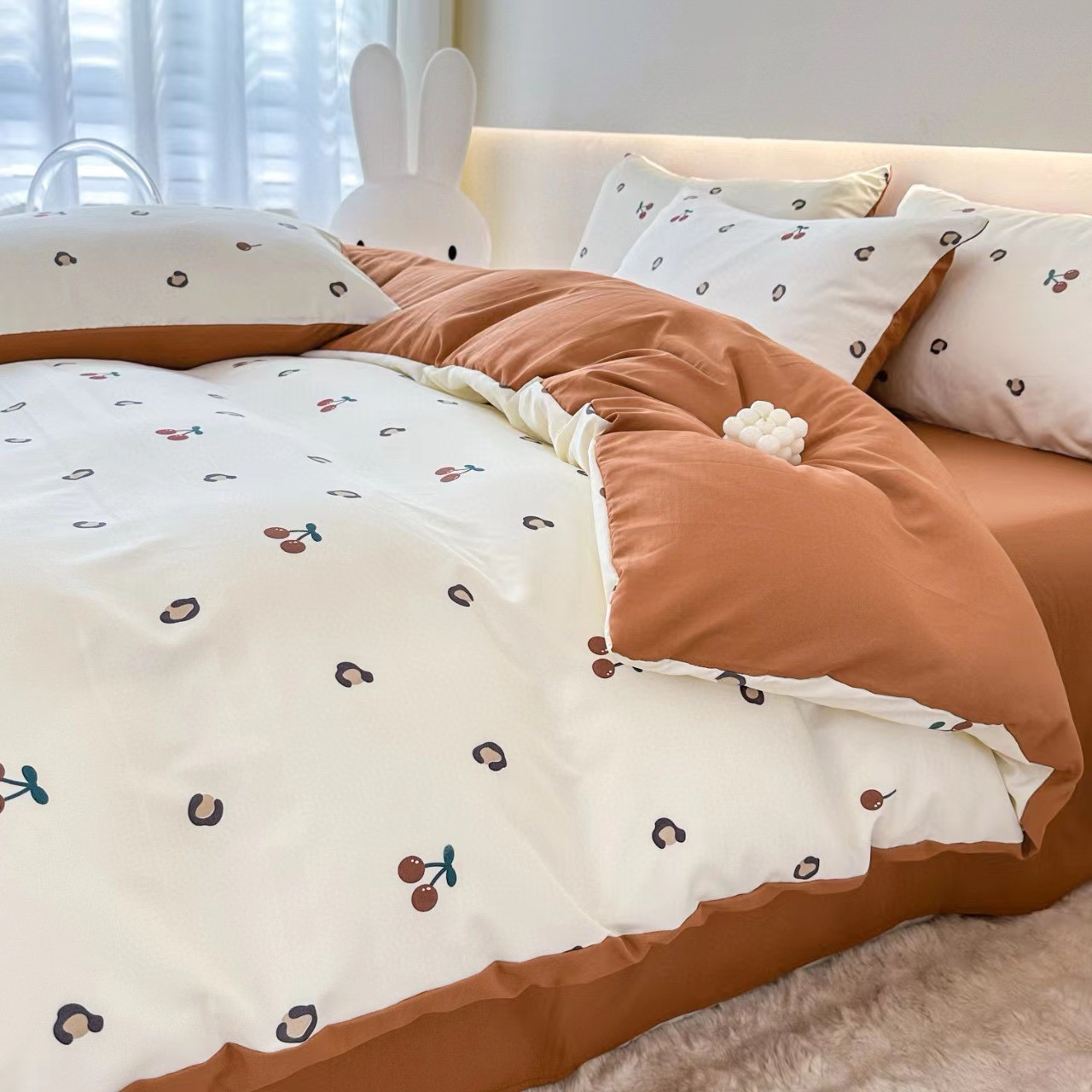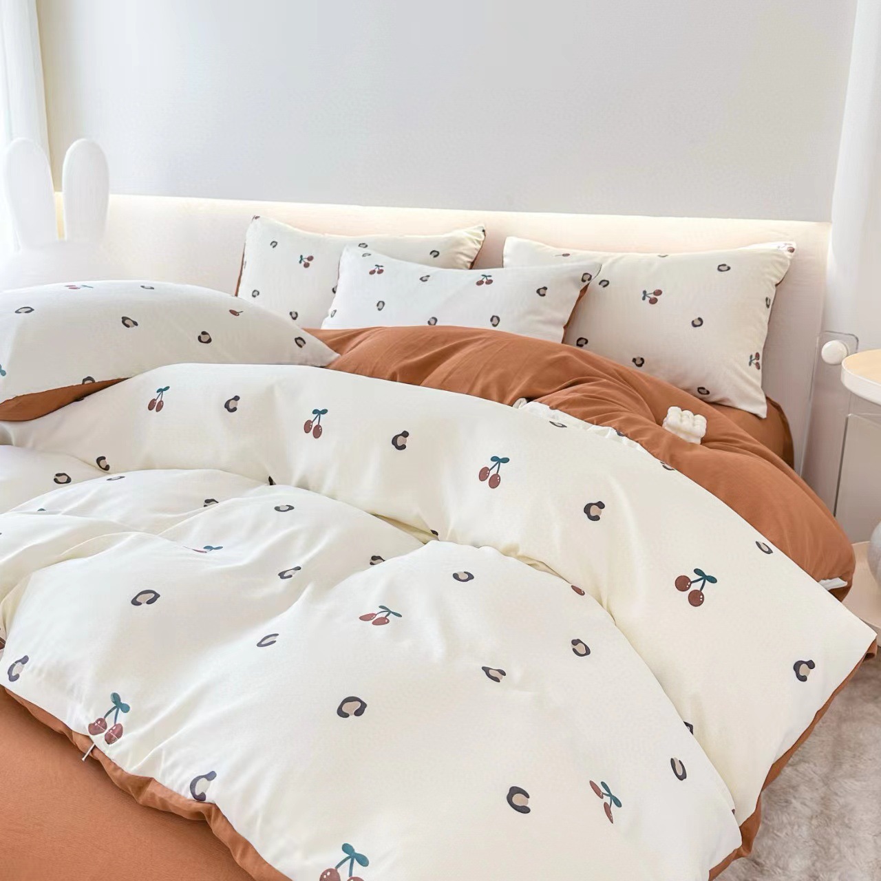 クラスA小豆綿有酸素ジャカード4点セット ソフト掛け布団カバー ベッドシーツ 寝具 春秋フレッシュ 2025新スタイル