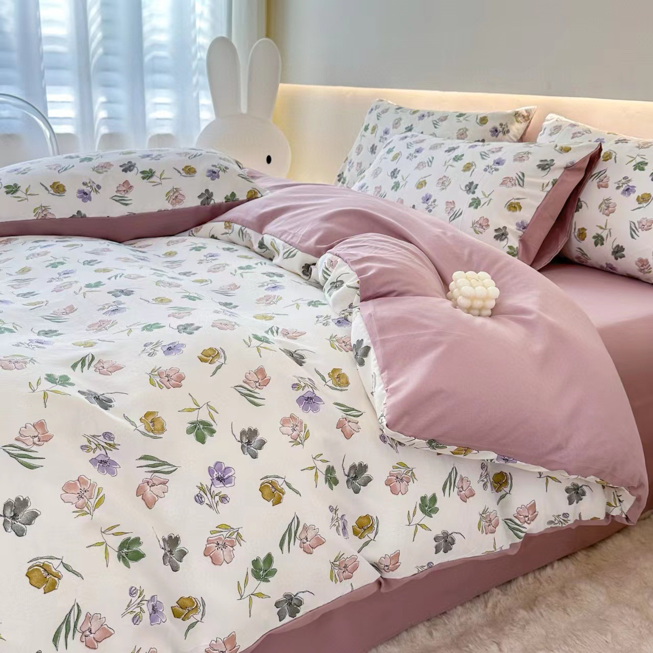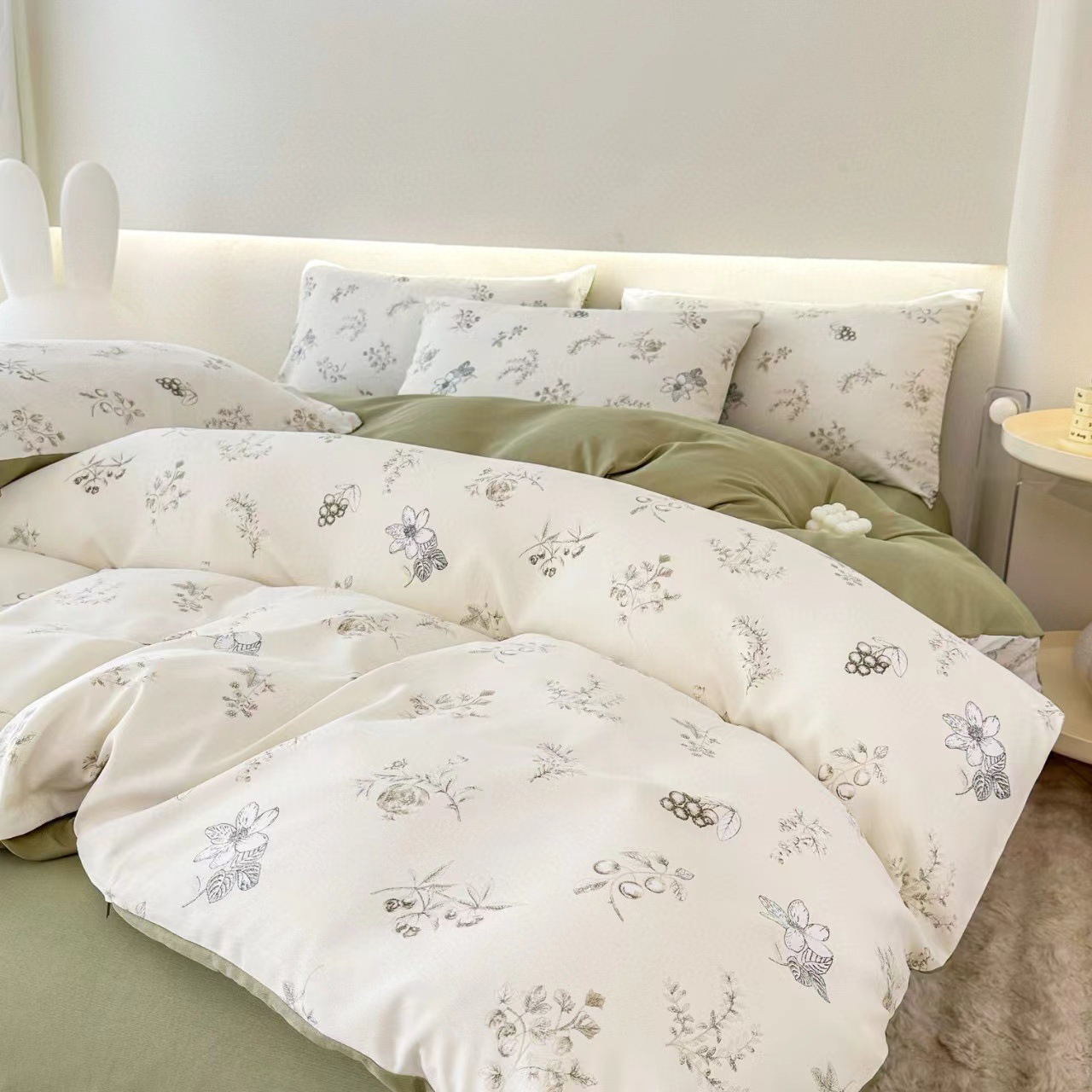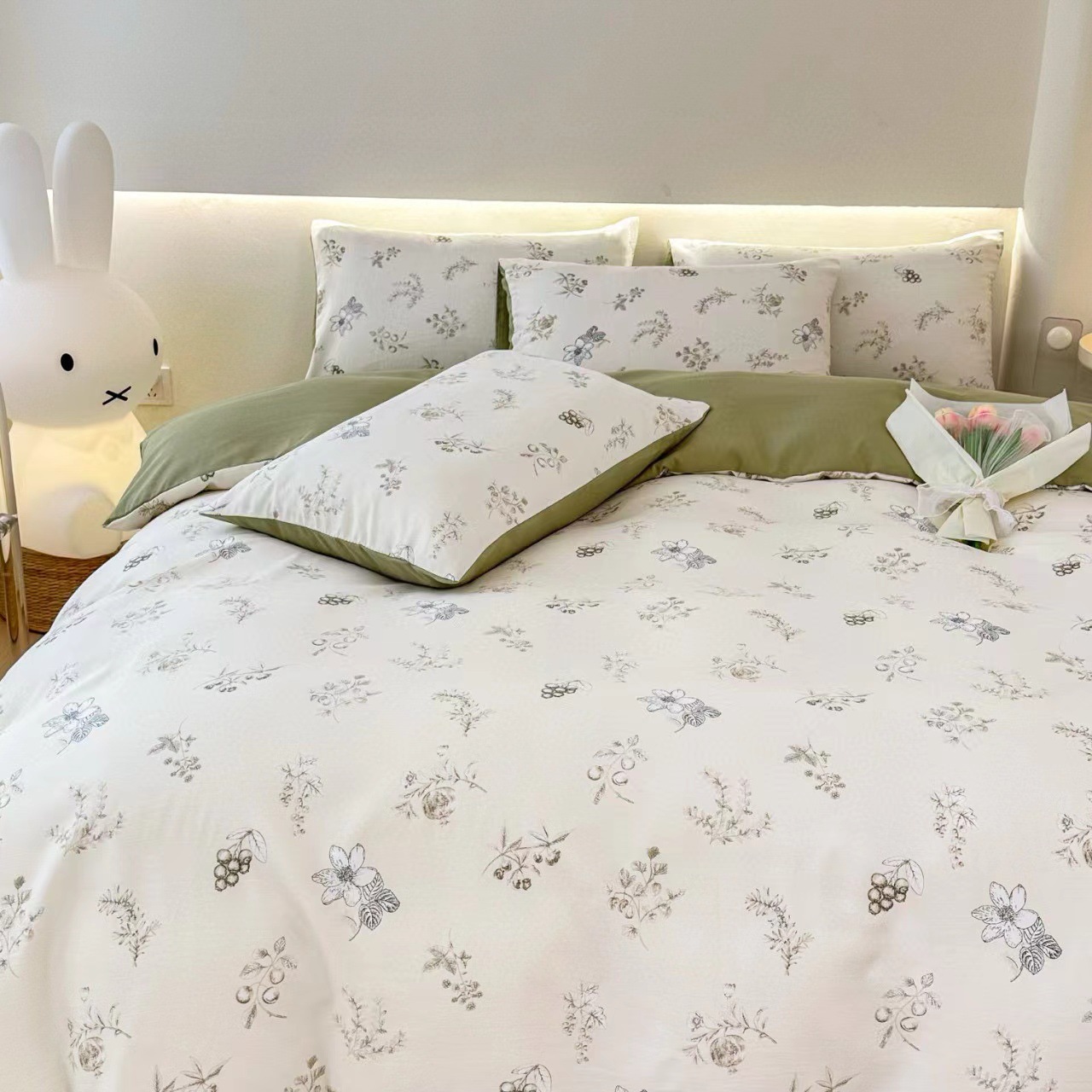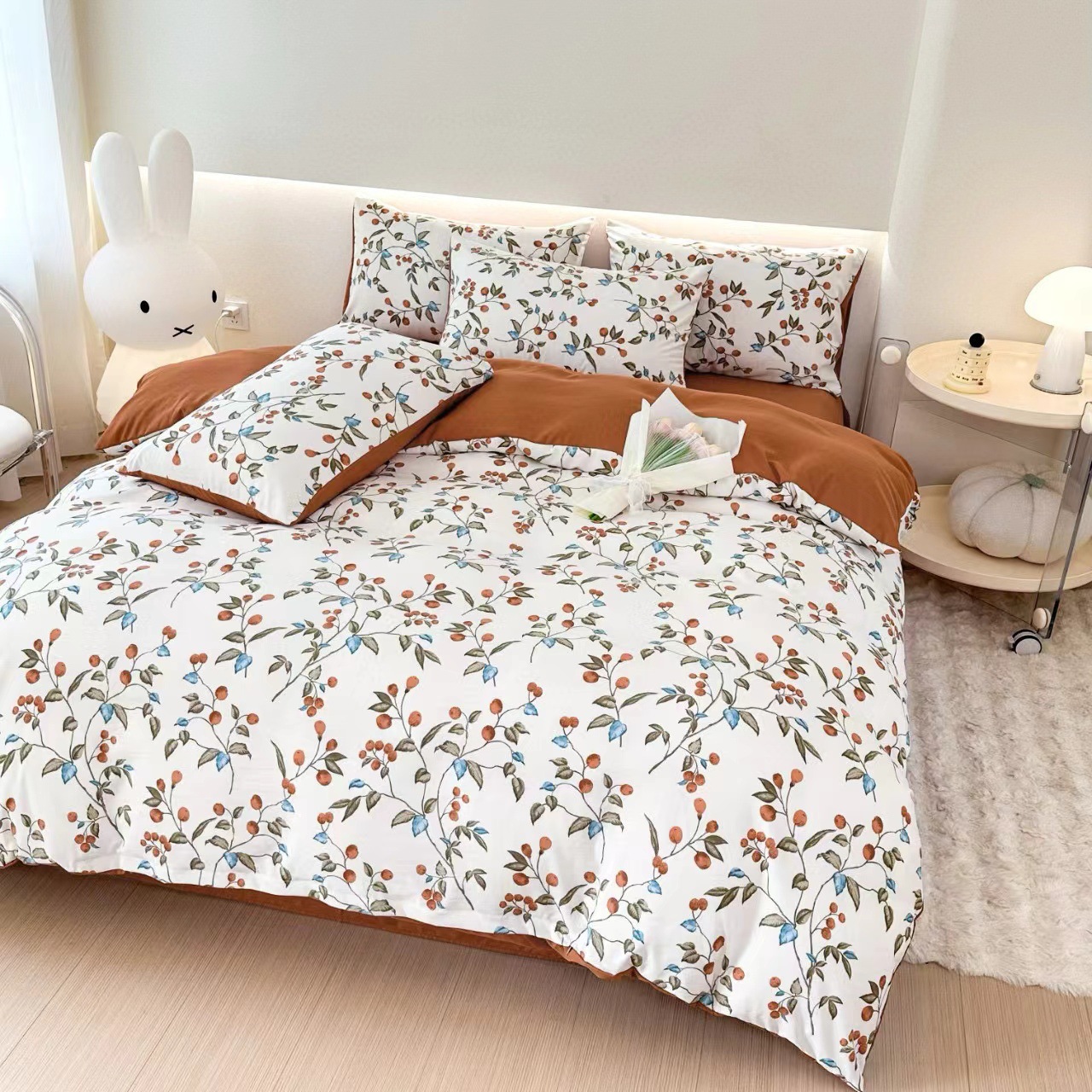 フランス風レトロな洗濯機で洗えるコットン素材のシンプルな小花柄の掛け布団カバー4点セット(シーツタイプ)を越境メーカーから直販