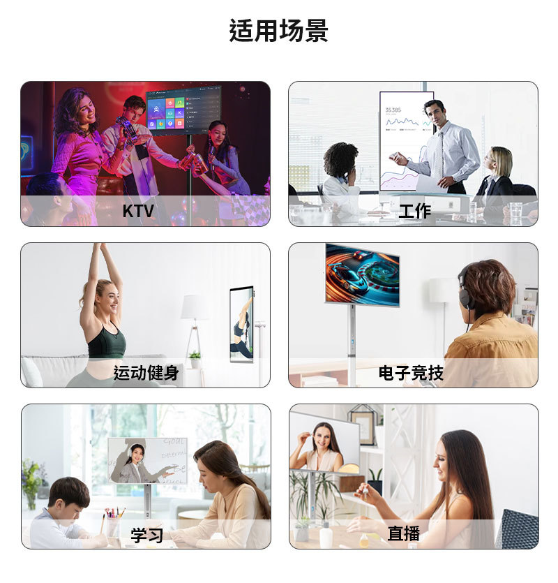 32inch 可動式スマートスクリーン、ガールフレンド向けスマートフォン、スマートフォンライブ配信機、モバイルテレビ、ワイヤレススクリーン投影、フィットネス一体型機器