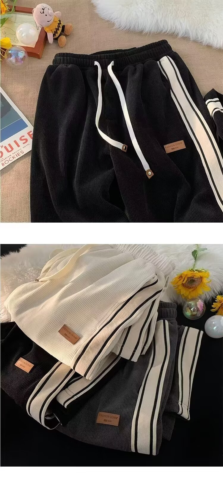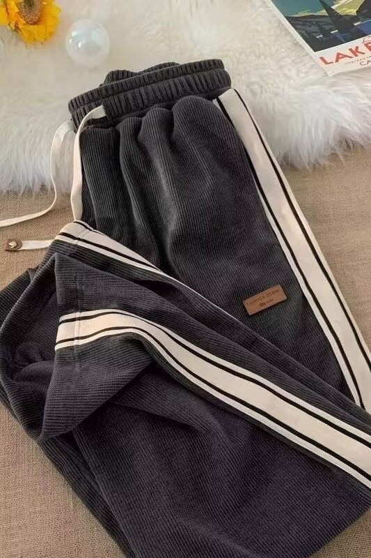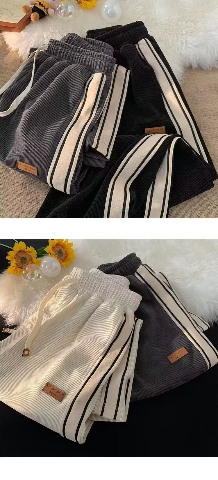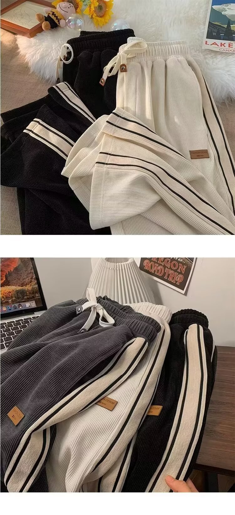 春と秋のコーデュロイのズボンの男性の青少年のゆったりとしたまっすぐな筒の広い足のズボンの潮流の男子学生の運動のレジャーのズボンの高い街