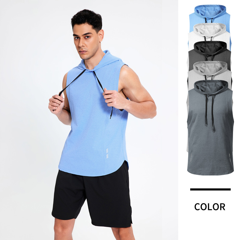 クロスボーダー マッスルフィットネス メンズ 春夏 スポーツ フード付き 無地 ノースリーブ スウェットシャツ バスケットボール トレーニングウェア ゆったり 通気性