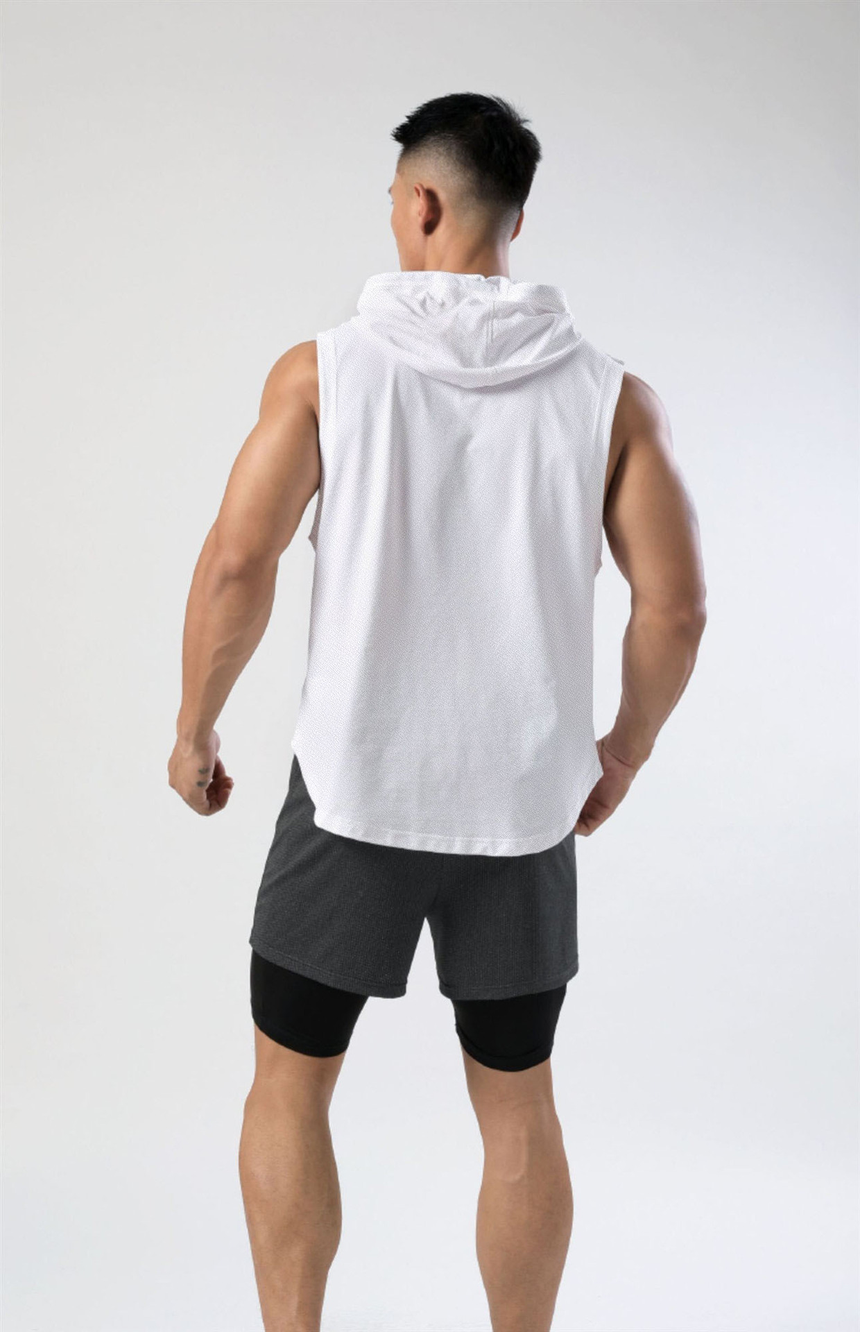 クロスボーダーノースリーブ Tシャツメンズサマースリーブベストトレンディなフード付きチョッキ半袖パーカーベスト Tシャツ男性用