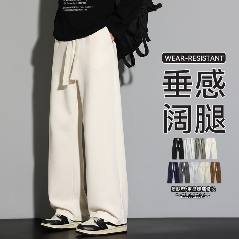 纯色棉质针织运动卫裤男秋冬港风直筒宽松美式潮牌青少年休闲长裤