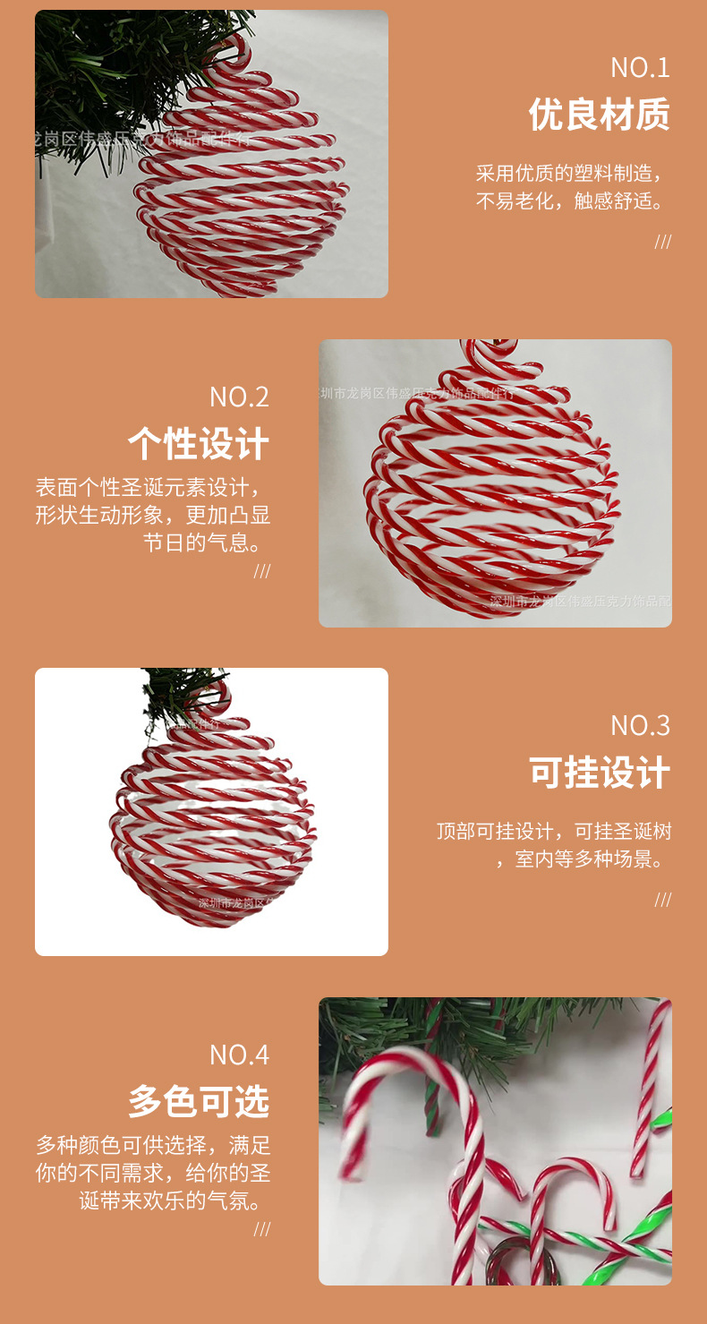 新しい装飾用品創意紅白キャンディストラッププラスチック材料のロリポップのハンギングキャンディクリスマスの杖メーカー
