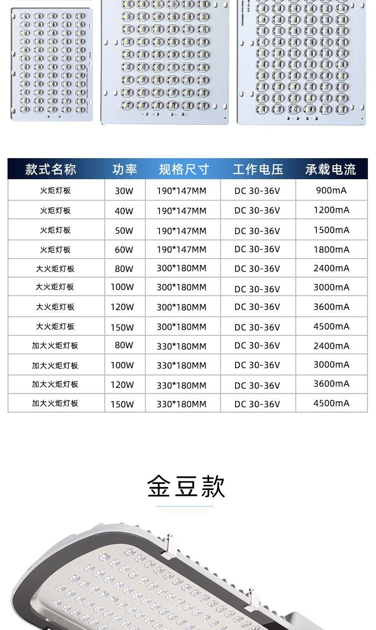 TCY街路灯LEDランプ基板光源基板30W40W50W60W80W100W150W金豆航空機部品