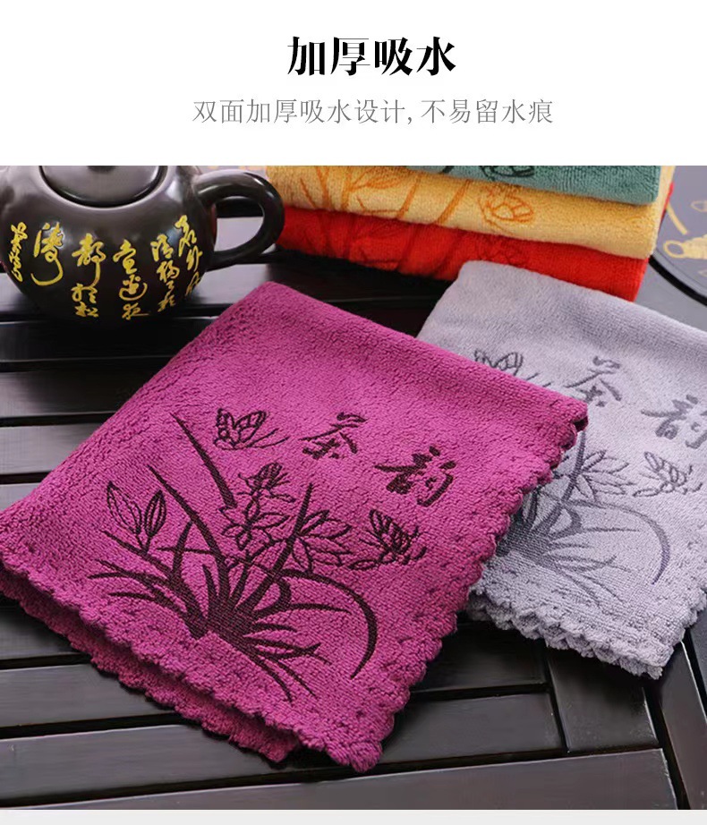 茶巾、茶布はロゴを入れることができ、吸水性があり、毛が抜けない、茶席、プリント入り、超極細繊維、柔らかい茶席マットです。