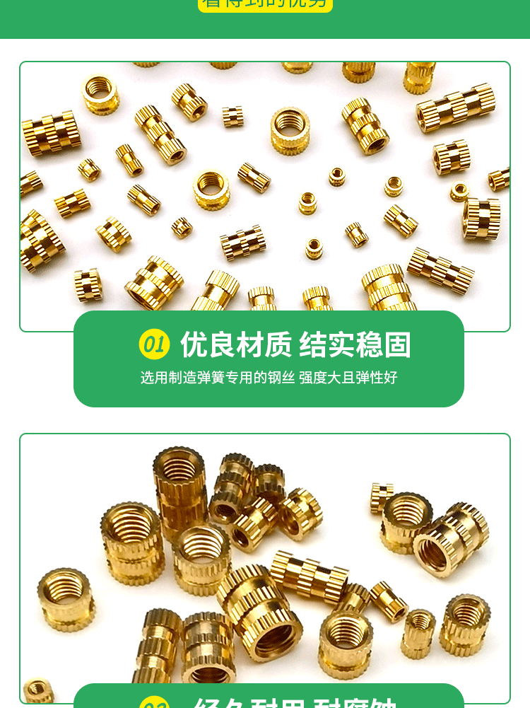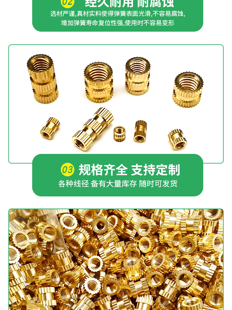 射出成形銅ナットインサート貫通穴銅花ナットブラインド穴ロールナットインチ銅埋込材M1M2-M10