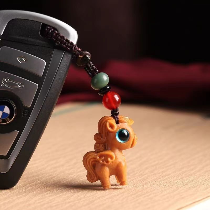 新商品の檀木の生肖のポニーカーのキーホルダー
