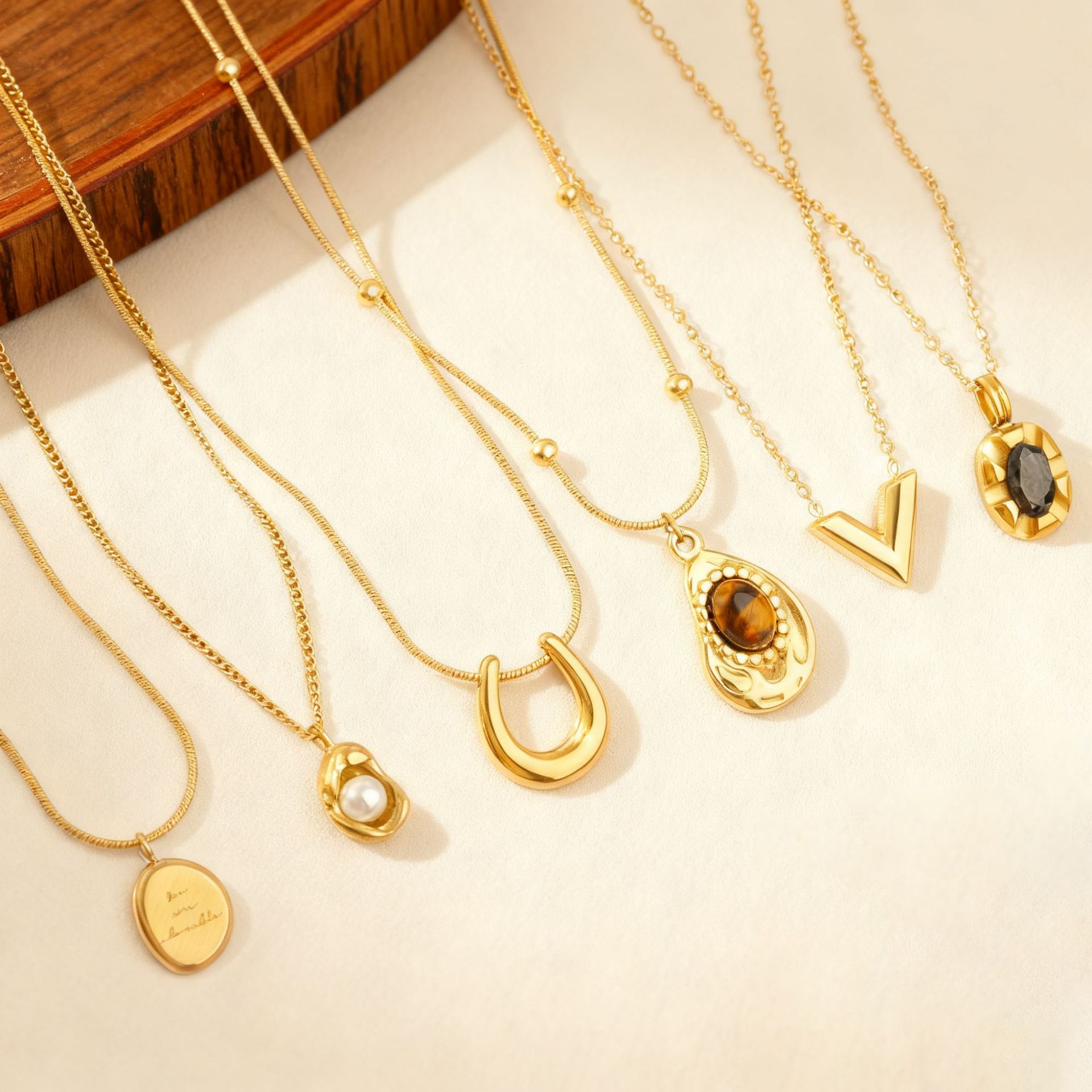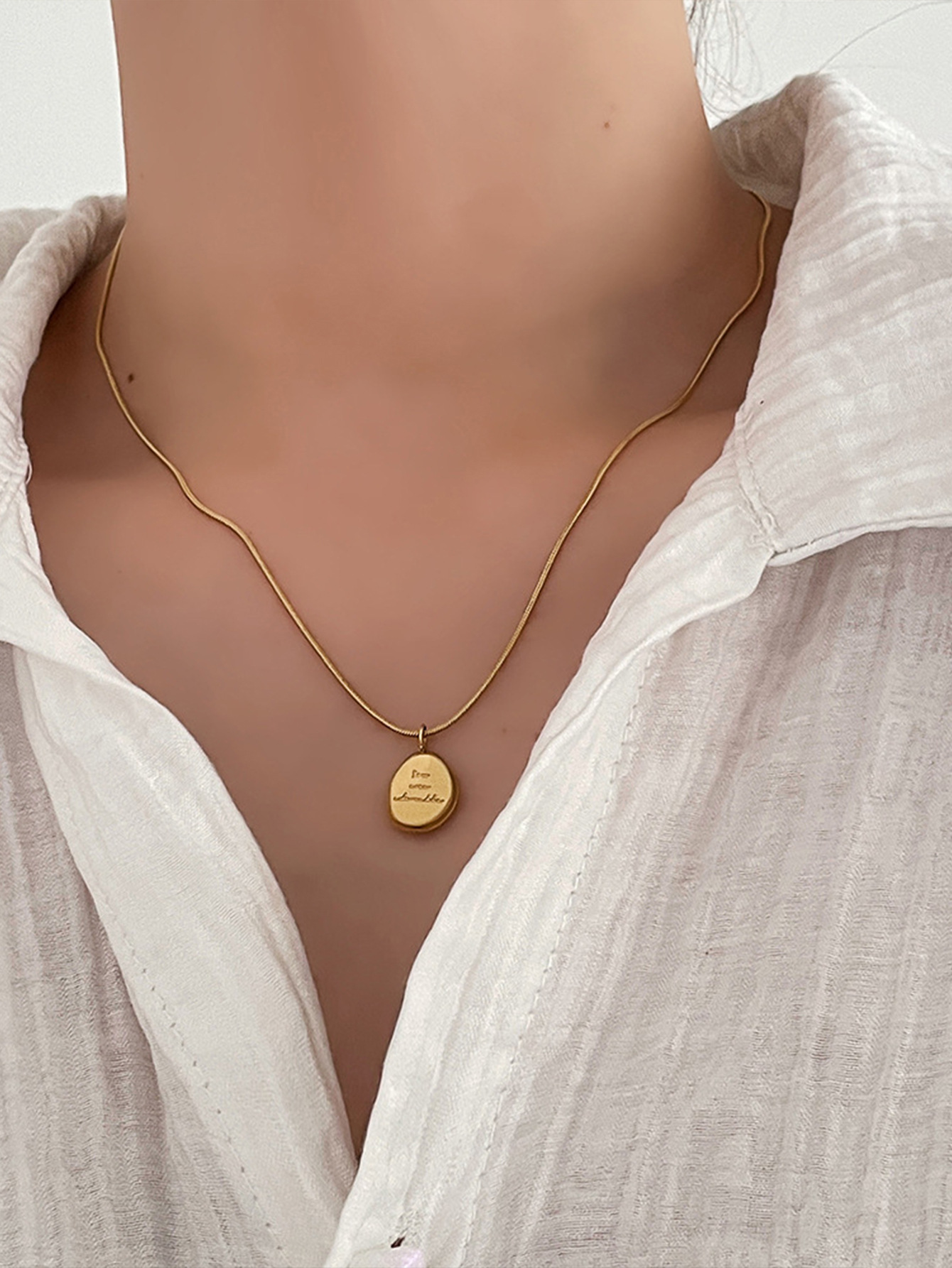 国境を越えた売れ筋アラビアラウンドプレートチタン鋼ネックレス、ファッショナブルで多用途、軽い高級感、シンプルでハイエンドのアクセサリー、工場出荷時の価格