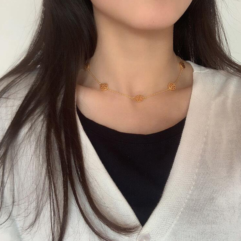 新商品の大衆は軽くて豪華な金色の豆のアルファベットのネックレスの女性の夏の鎖の骨の鎖の精巧なネットは色の硬貨を落とさないでください。