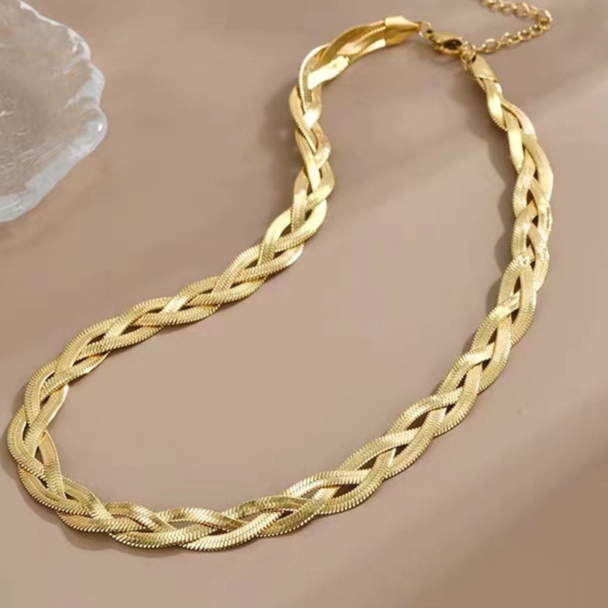 チタン鋼の三色の手編みチタン鋼のネックレスの女性の新型ファッション欧米の個性の鎖の骨のチェーンはぶつかりません。