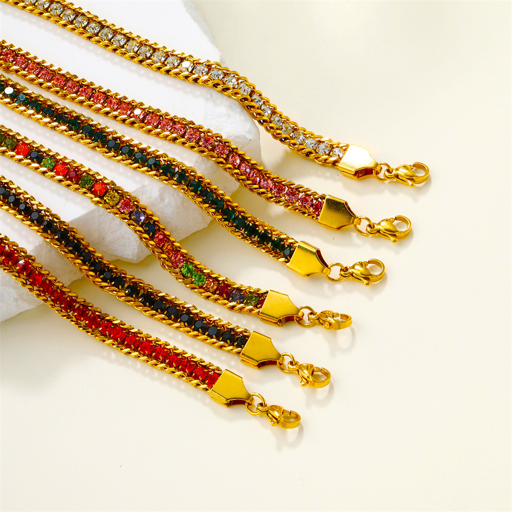 新商品のクロスボーダー爆発型ステンレスカラードリルのジルコンは色を落とさないで、ファッションブレスレットの個性があります。
