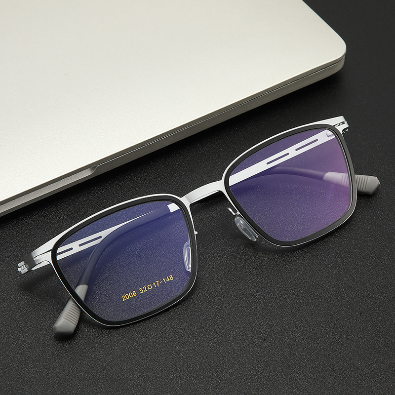 新しいプレートフェルール弾性鋼金属メガネフレームコーティングされた正方形のメンズネジなしフラットメガネは近視に装備可能
