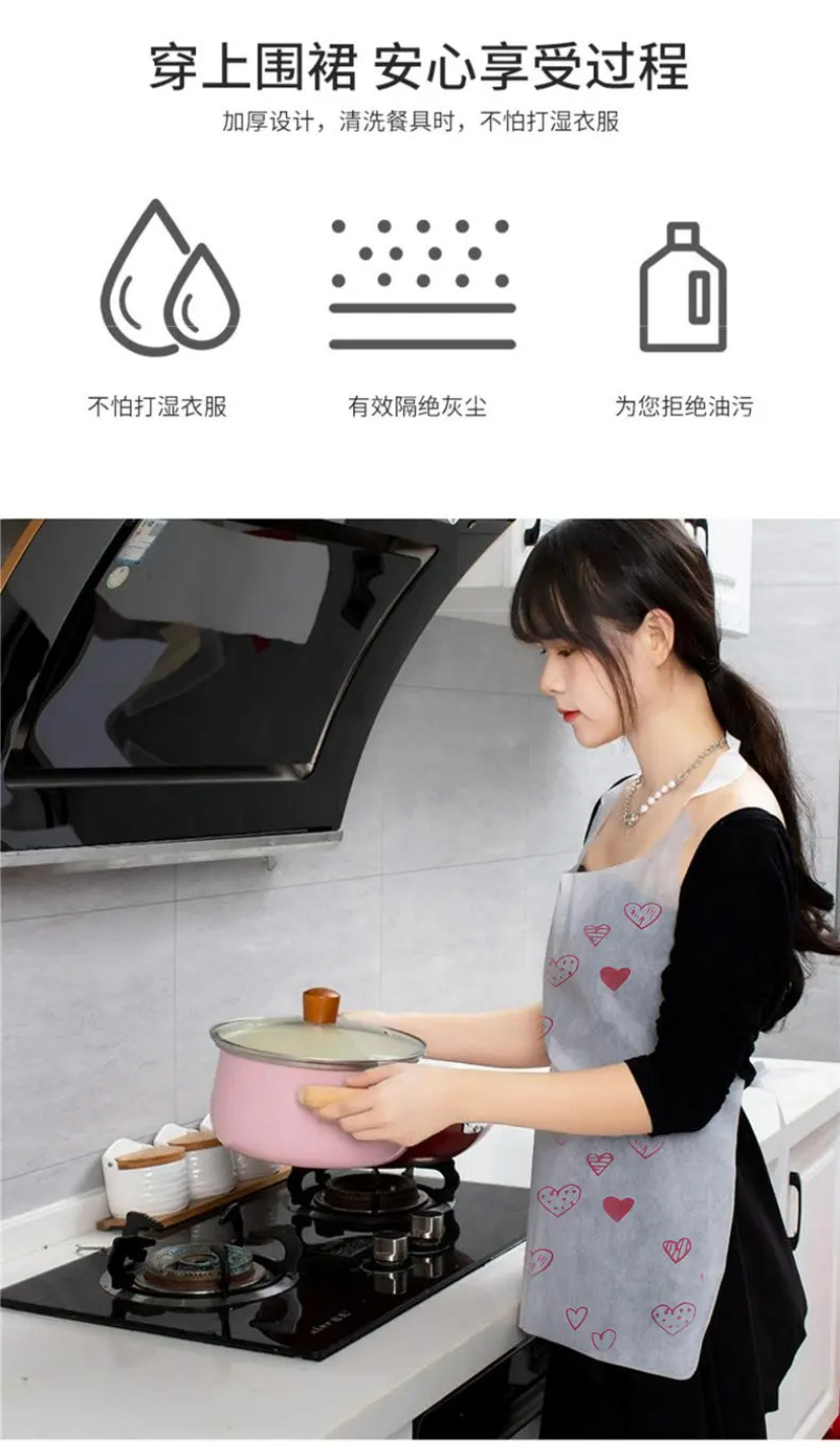 新型使い捨て不織布エプロン愛プリント通気性家庭食事焼き鍋カバーエプロン