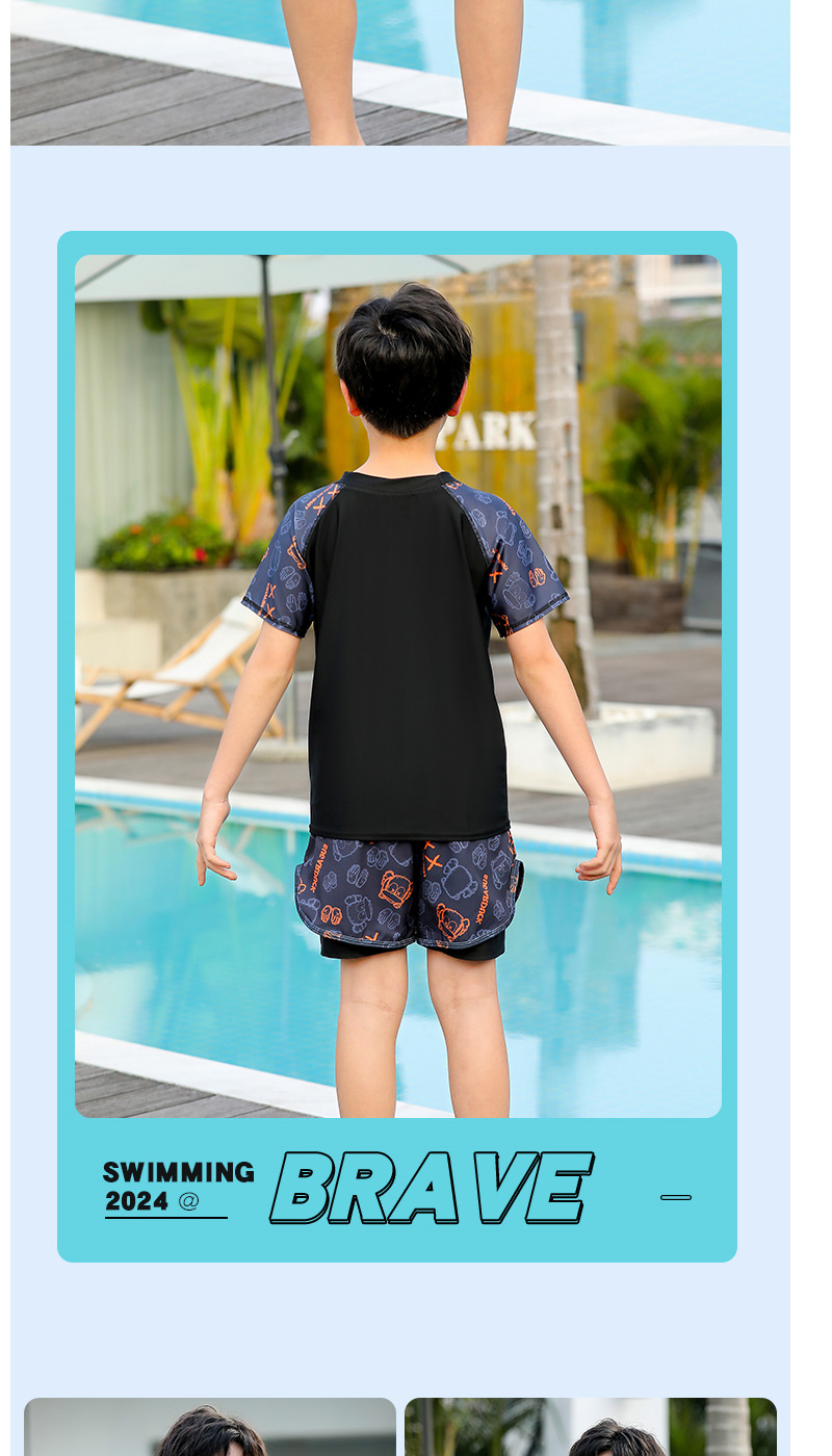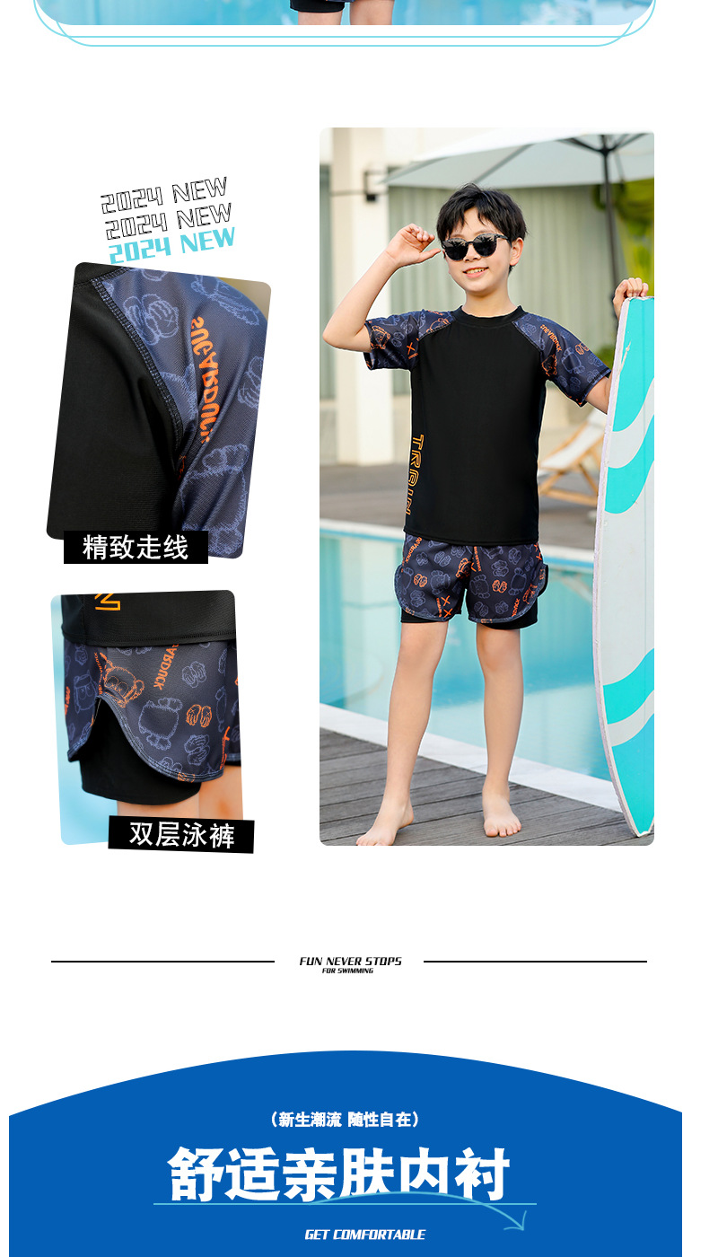 子供の水着の男の子の分体の2024新型の男の子の水着の大きい青少年の冬の二重の水泳のズボンのカバーの装備
