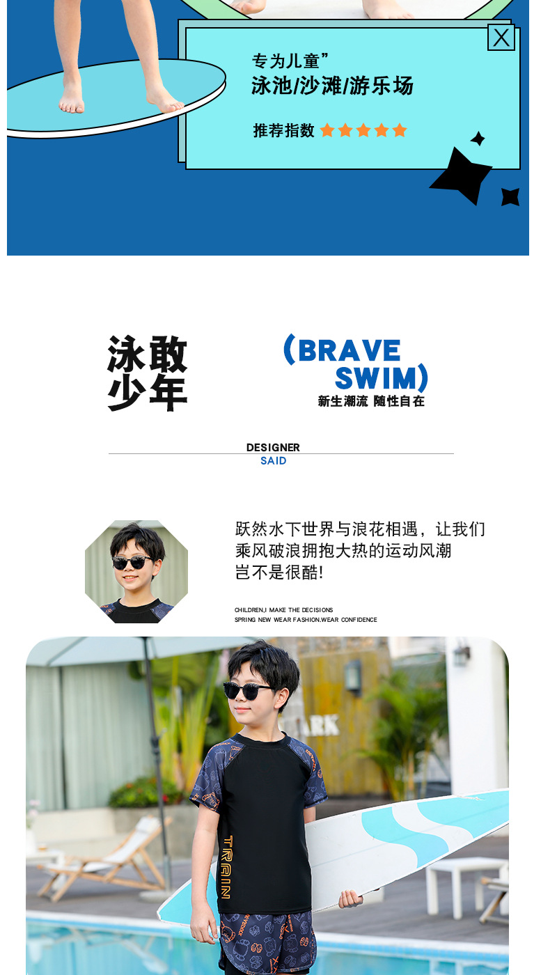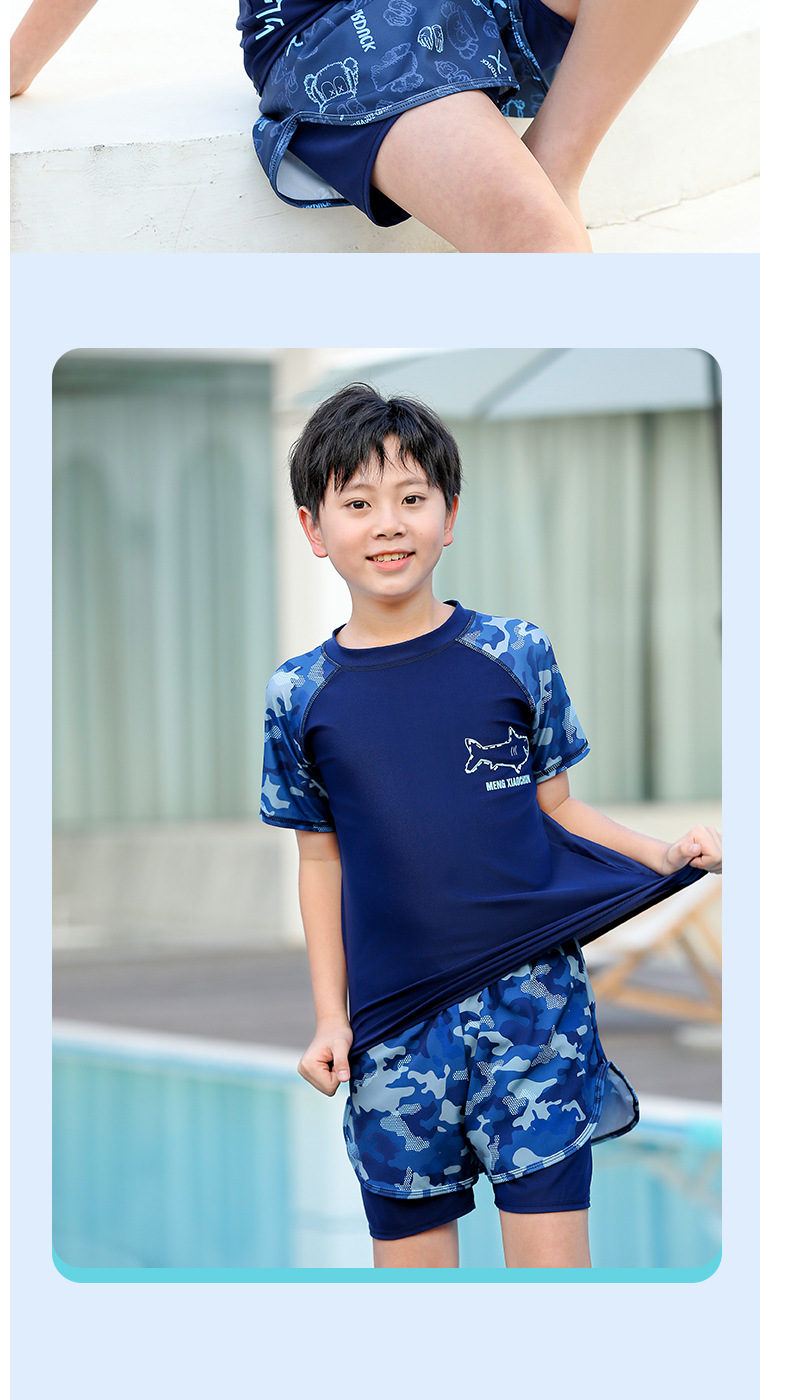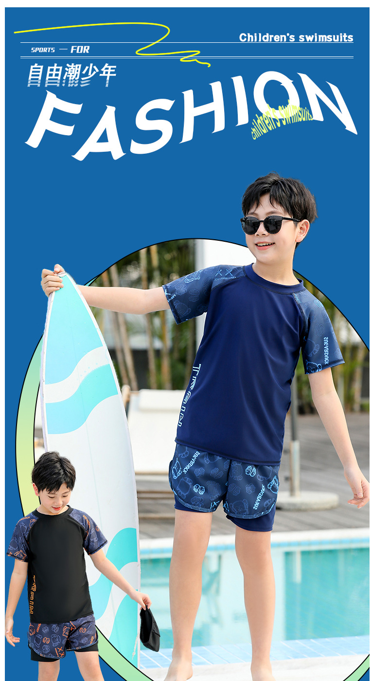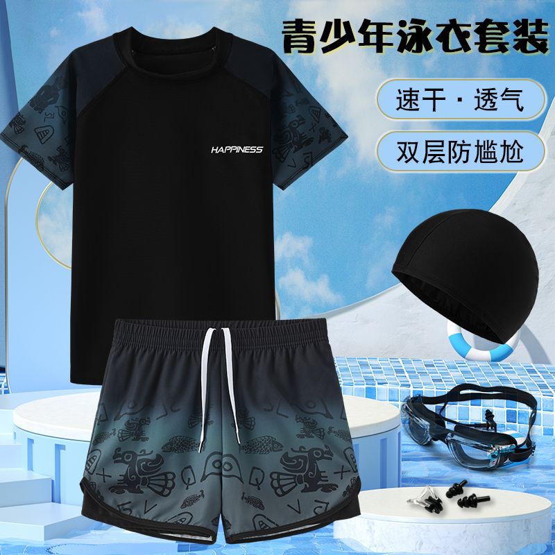水着男子児童中学生分体2025新型太った児童水着青少年の気まずい水泳パンツセット