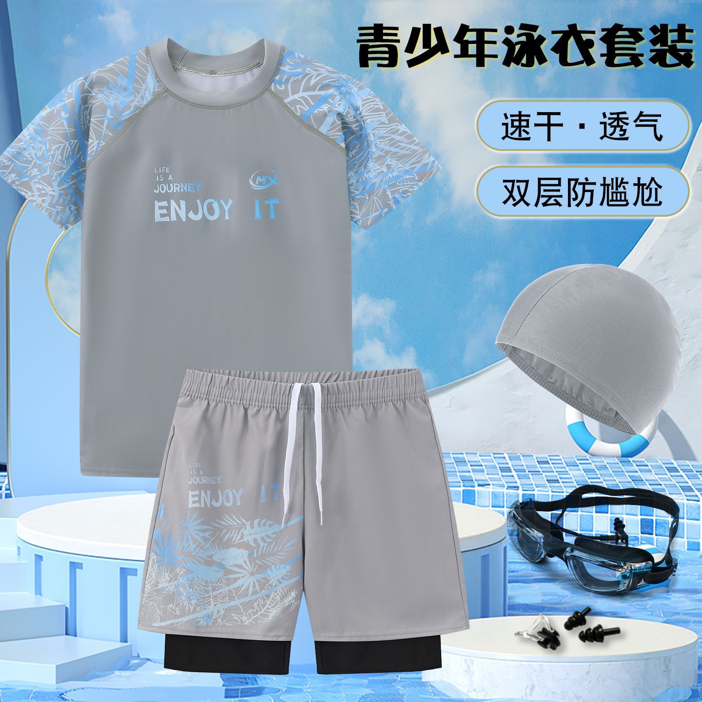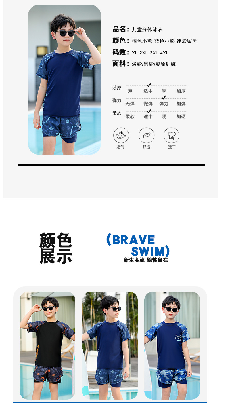 泳衣男大童初中生分体2026新款胖儿童游泳衣青少年防尴尬泳裤套装