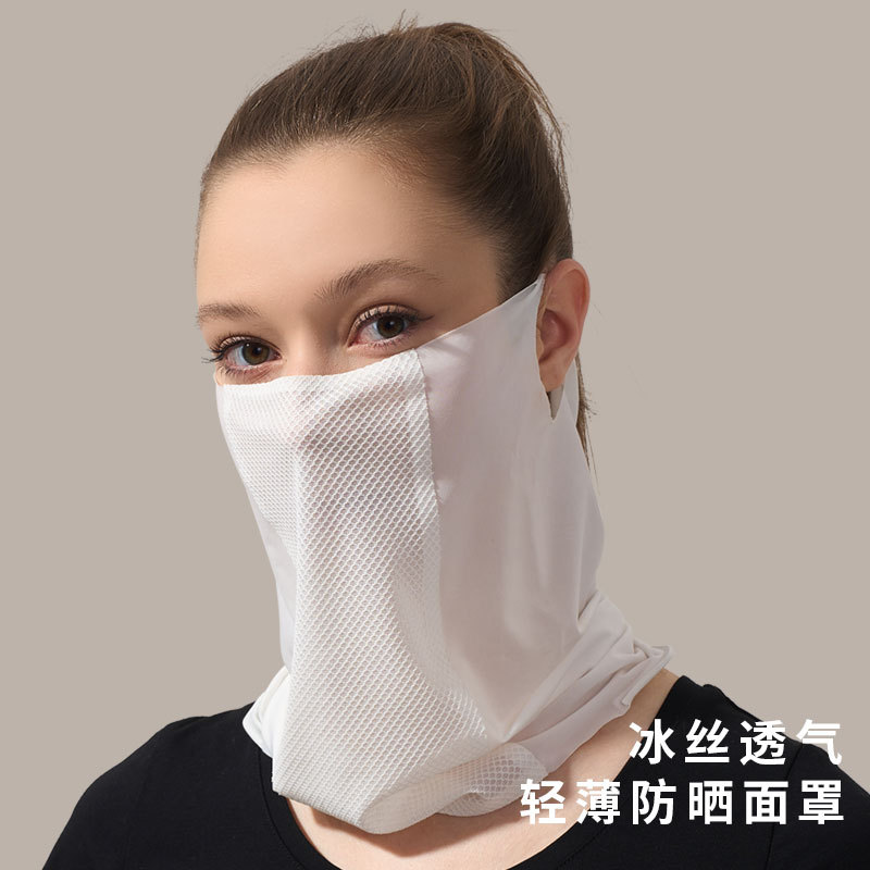 夏の日焼け止め氷糸マスク女性の薄い紫外線防止サイクリング首保護ゴルフ耳カバー顔ベールxtj85