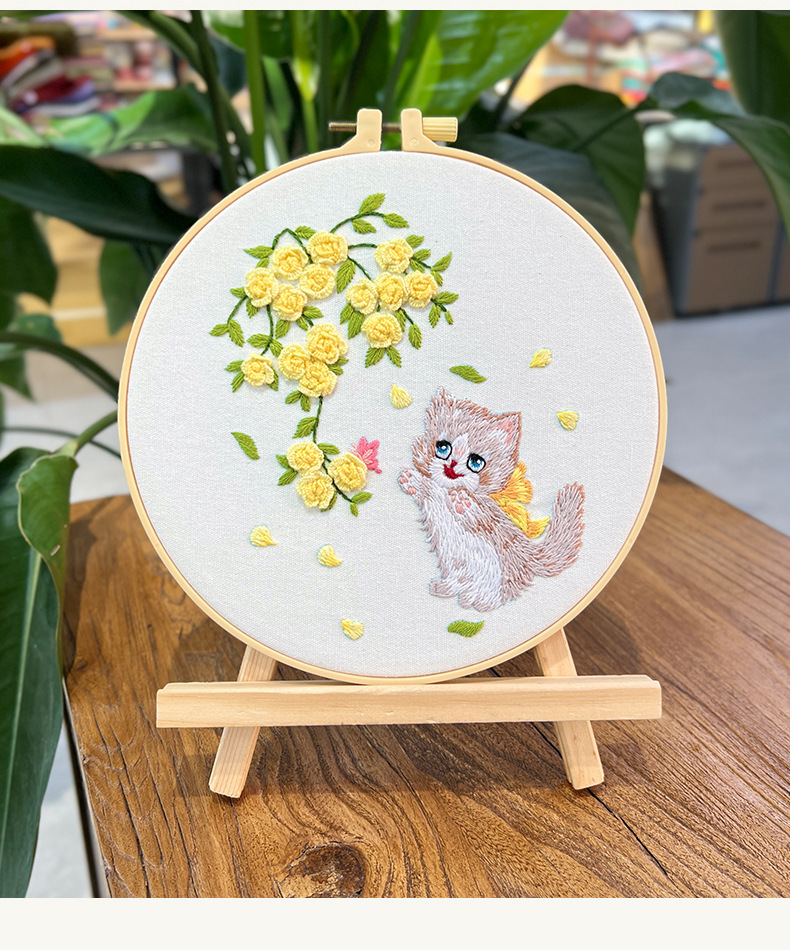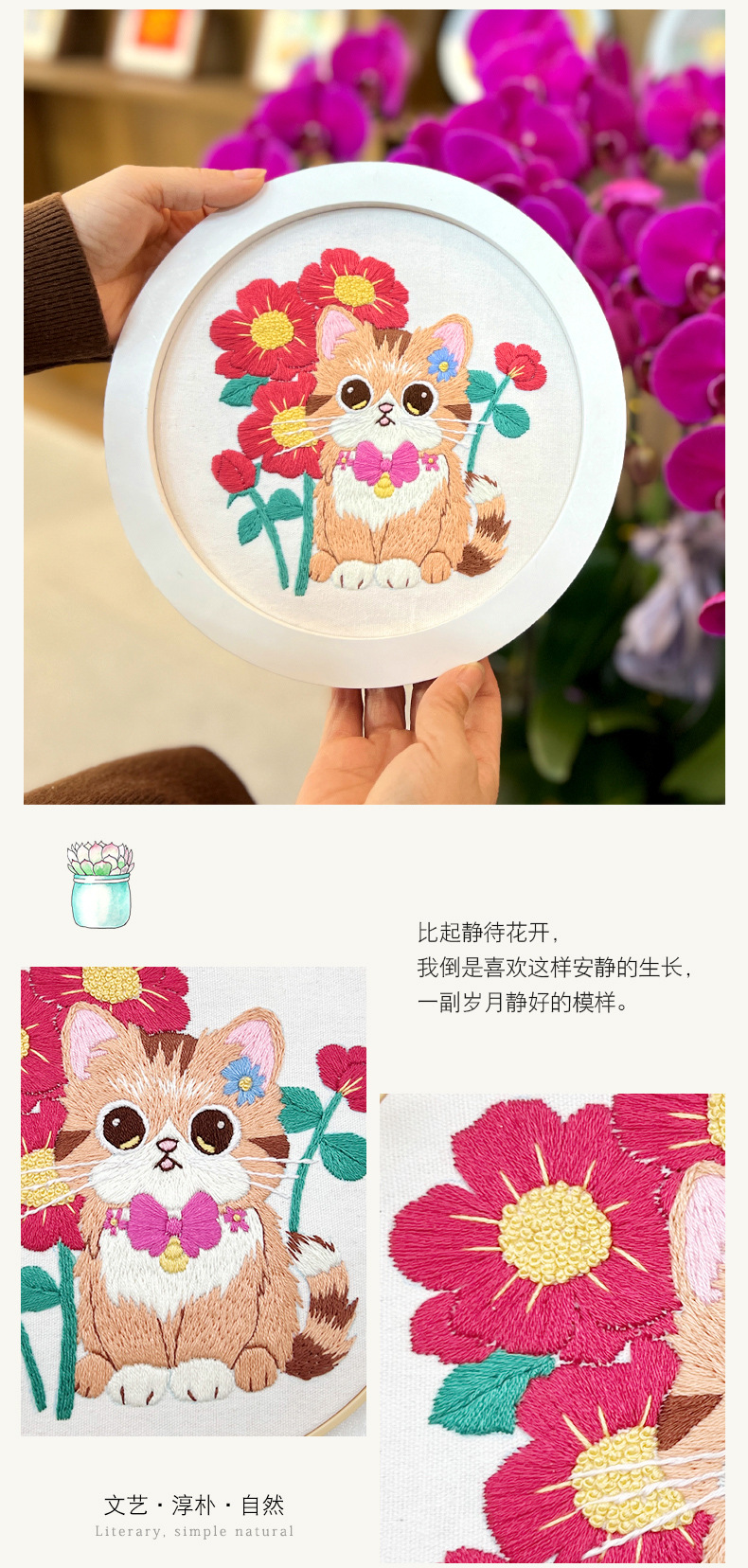 かわいい漫画の小さい花の猫の刺繍のスーツの英語のチュートリアルの初心者の包みの魯繍の客間の寝室は絵の子供のプレゼントを掛けます。