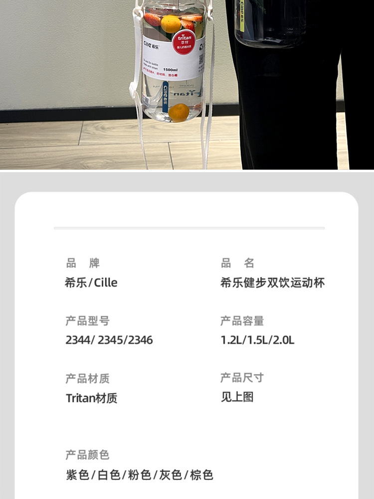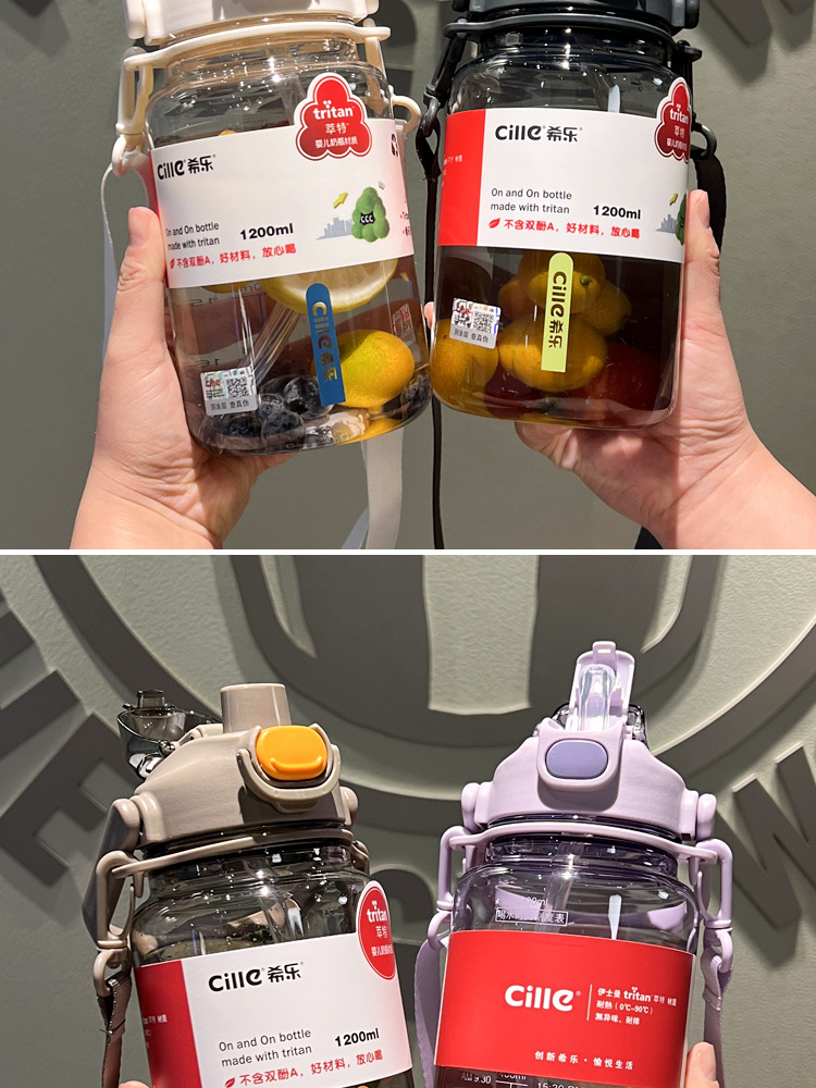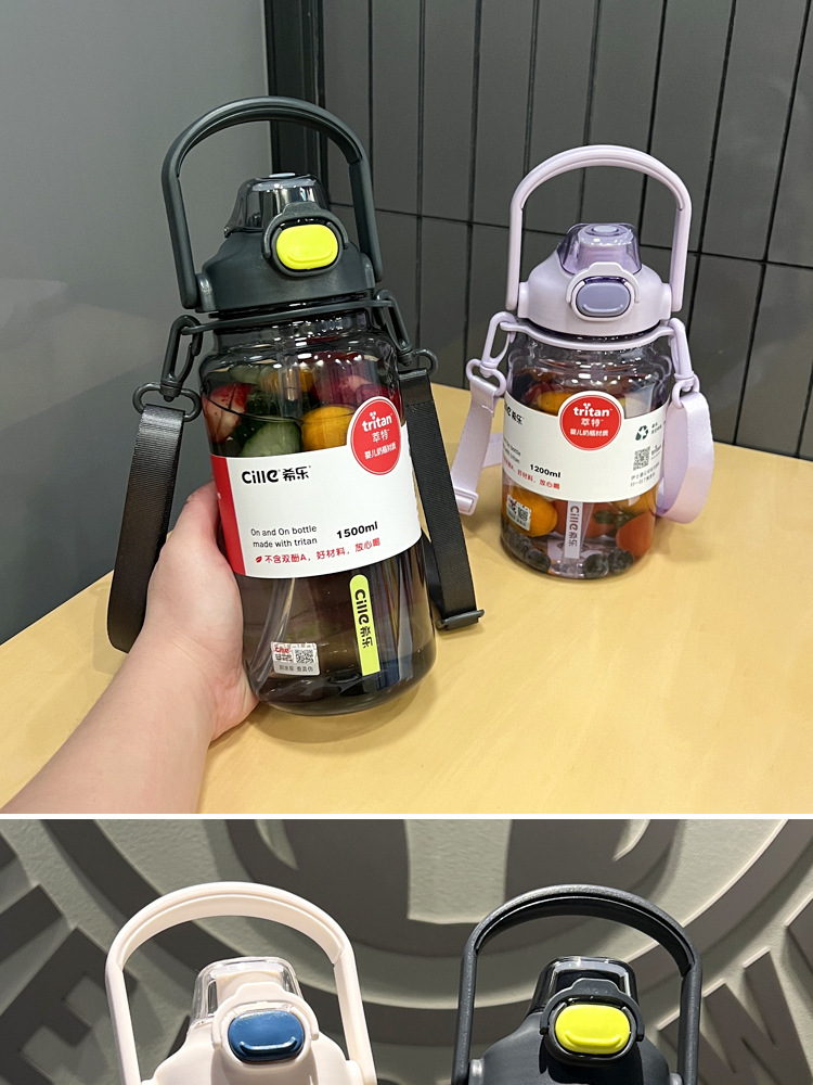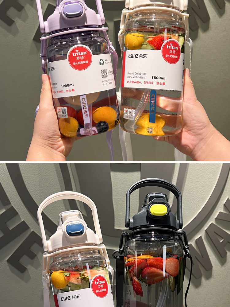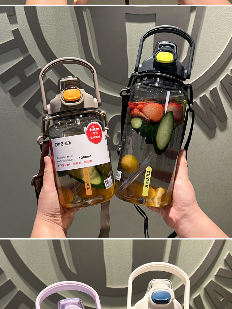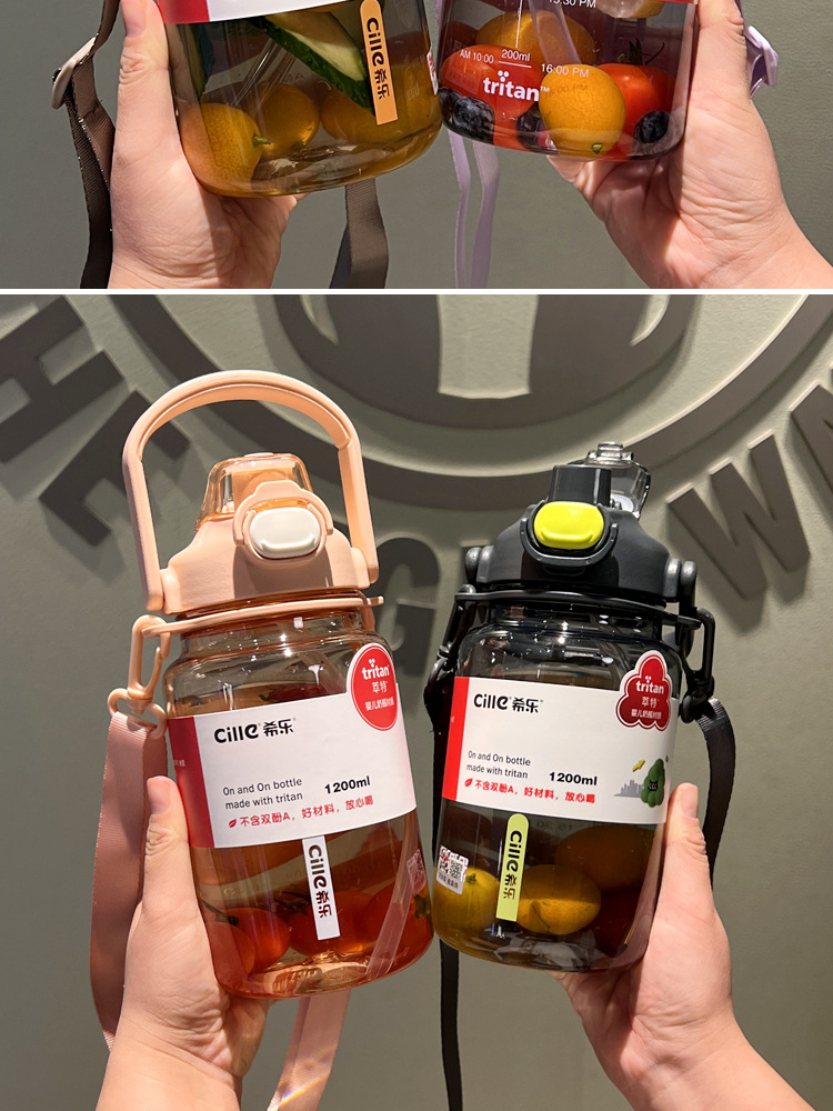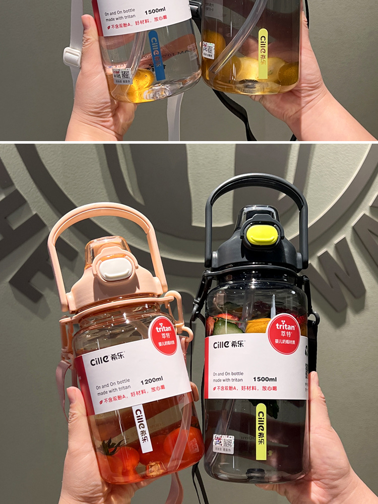 希楽tritanコップ男女士高颜値学生大容量カップストロー二重カップベルト付き水筒