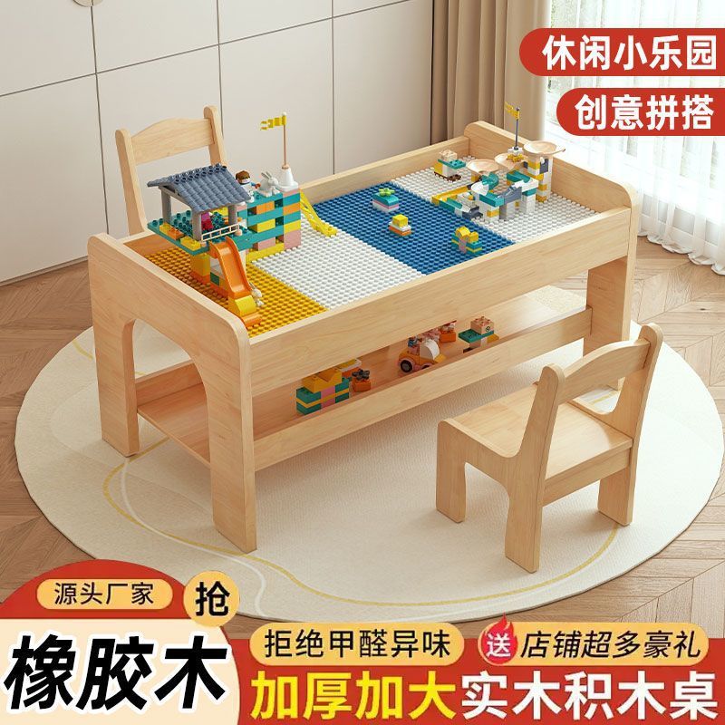 橡胶木实木积木卓耐用宝宝益智玩具卓儿童多功能玩具卓室内学习桌