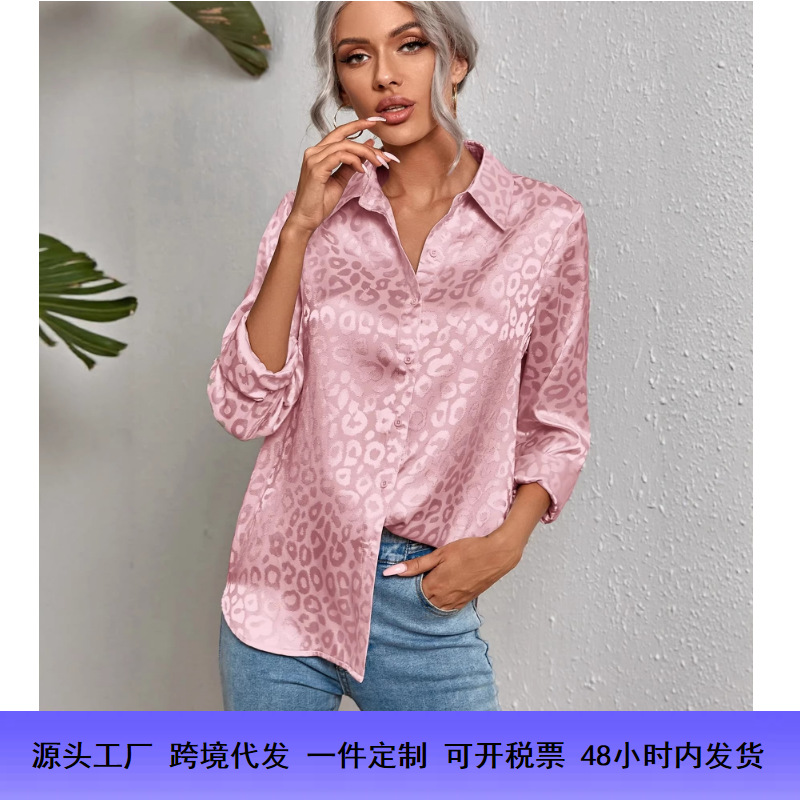 跨境新款欧美女士缎面衬衫仿真丝色丁长袖衬衣街头潮流外贸女装