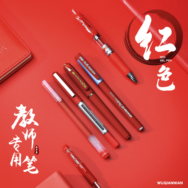 五千年紅筆0.7mmサインペン0.5mm押し中性筆直液式先生専用添削作業ペン